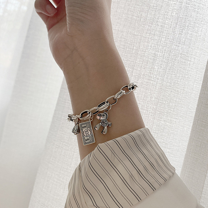 Fleepmart 925 Sterling Silver Vintage Horse Dollar Fish Head Pendant Chain Bracelet Female Unique Design Fashion Coin Wholesale