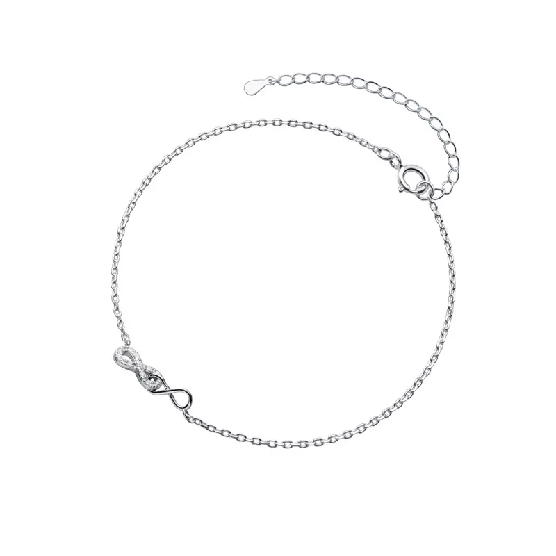Fleepmart 925 Sterling Silver Zircon Infinity Charm Anklets For Women Gifts Foot Jewelry