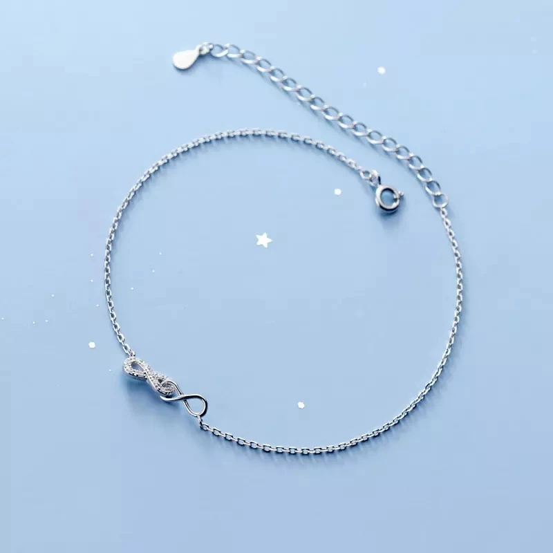 Fleepmart 925 Sterling Silver Zircon Infinity Charm Anklets For Women Gifts Foot Jewelry