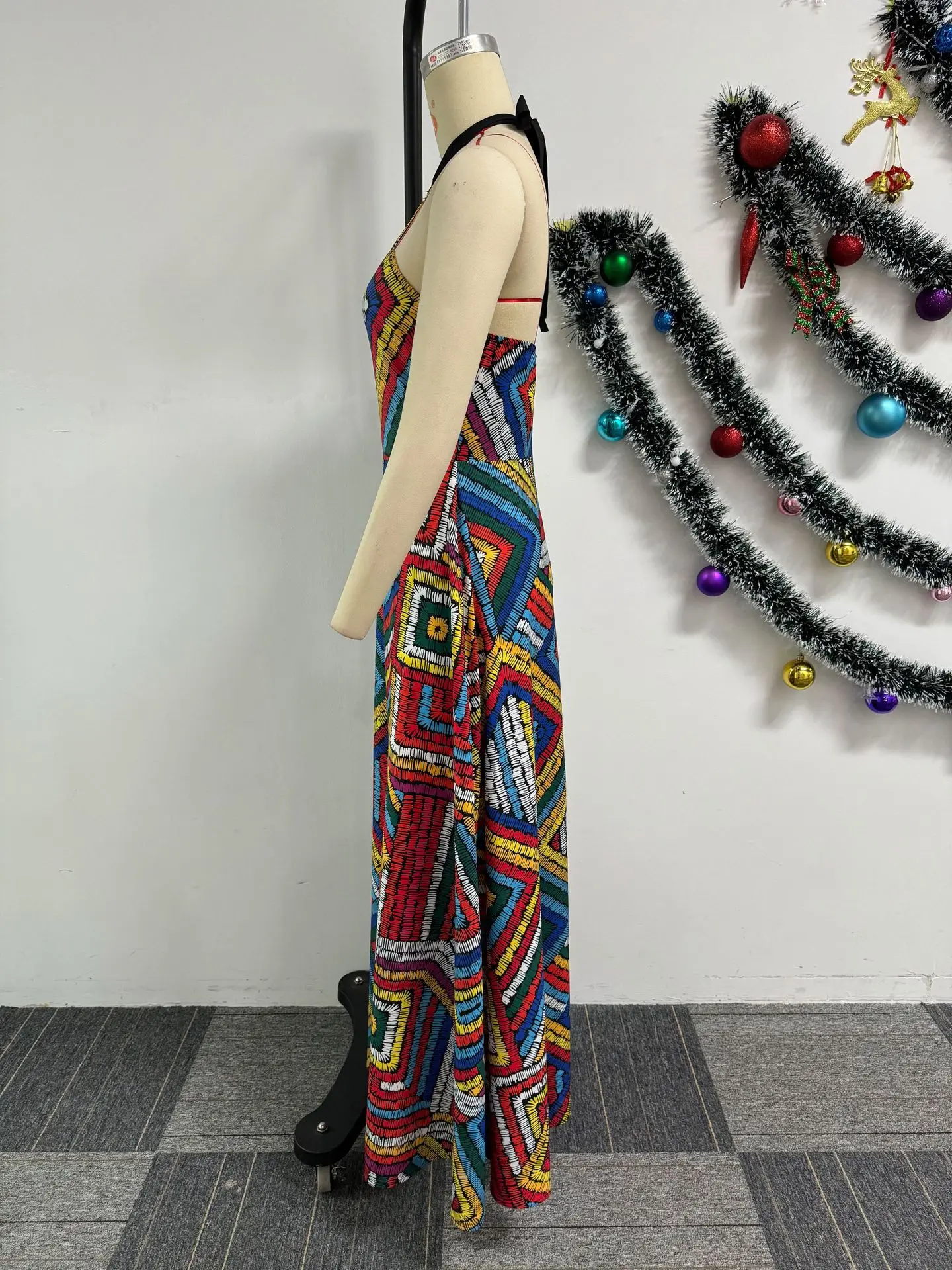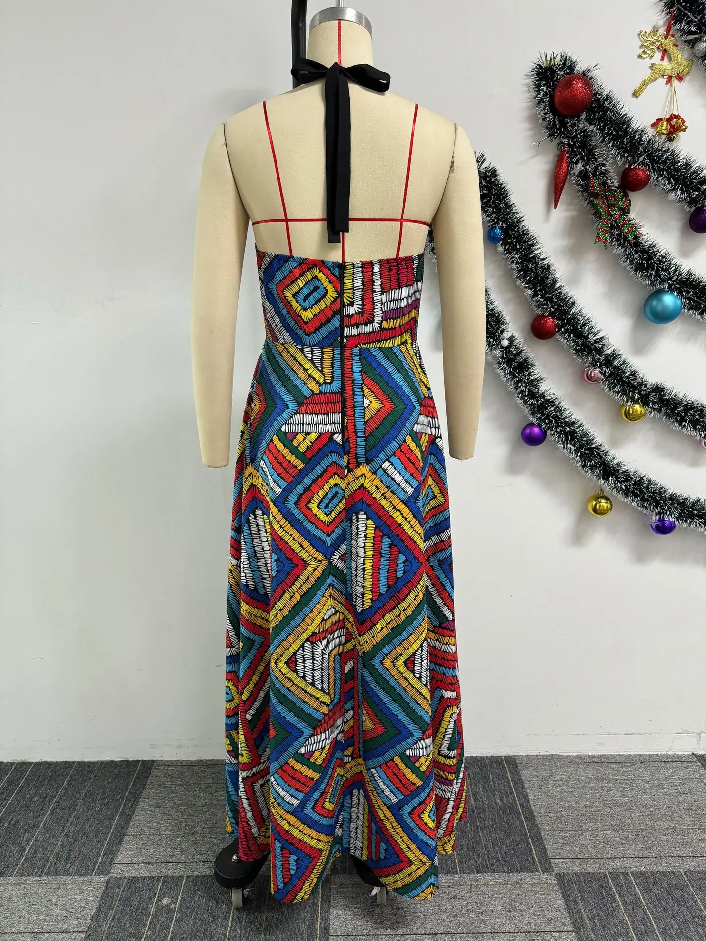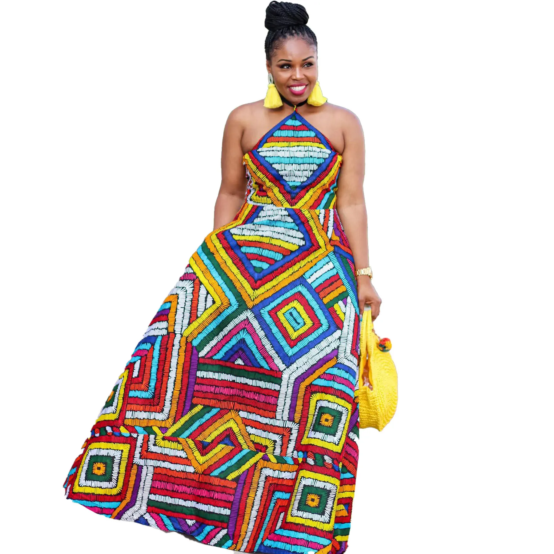 Fleepmart African Dresses For Women Elegant Dashiki Summer Spaghetti Straps Maxi Dress Ladies Traditional Africa Clothing Fairy Long Dress