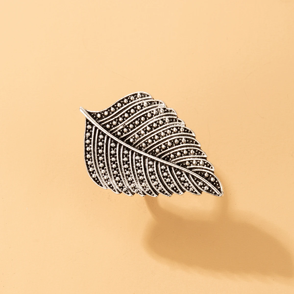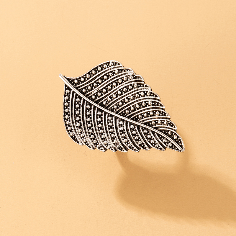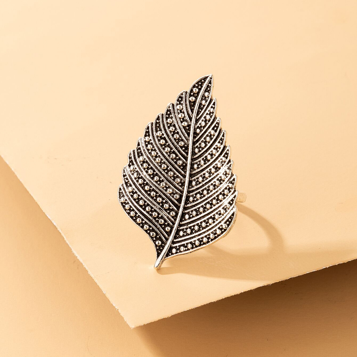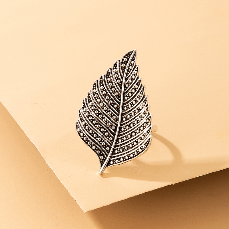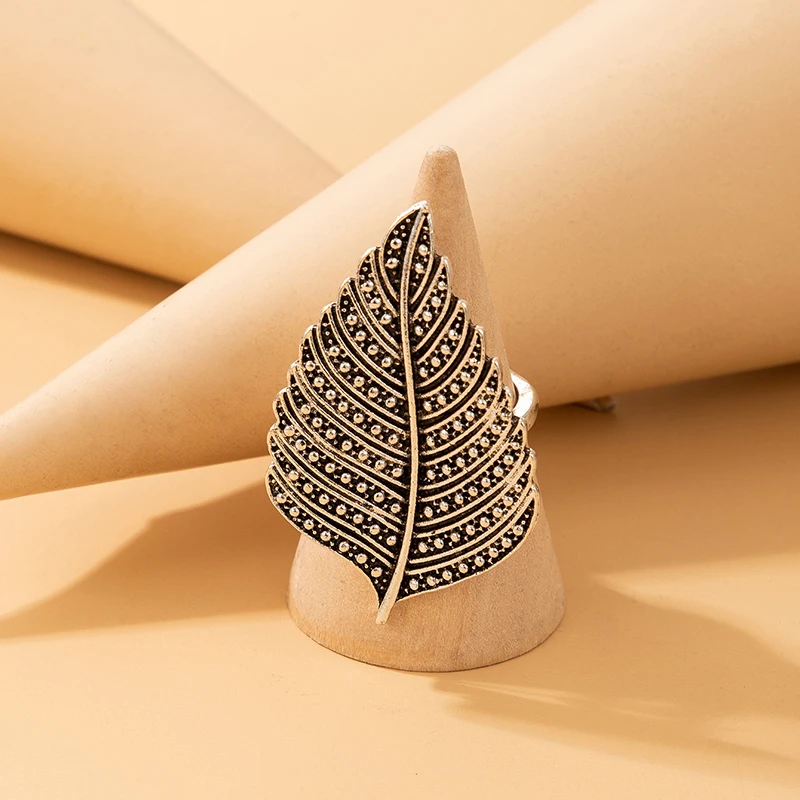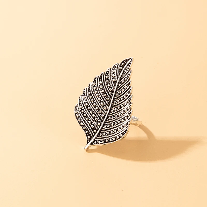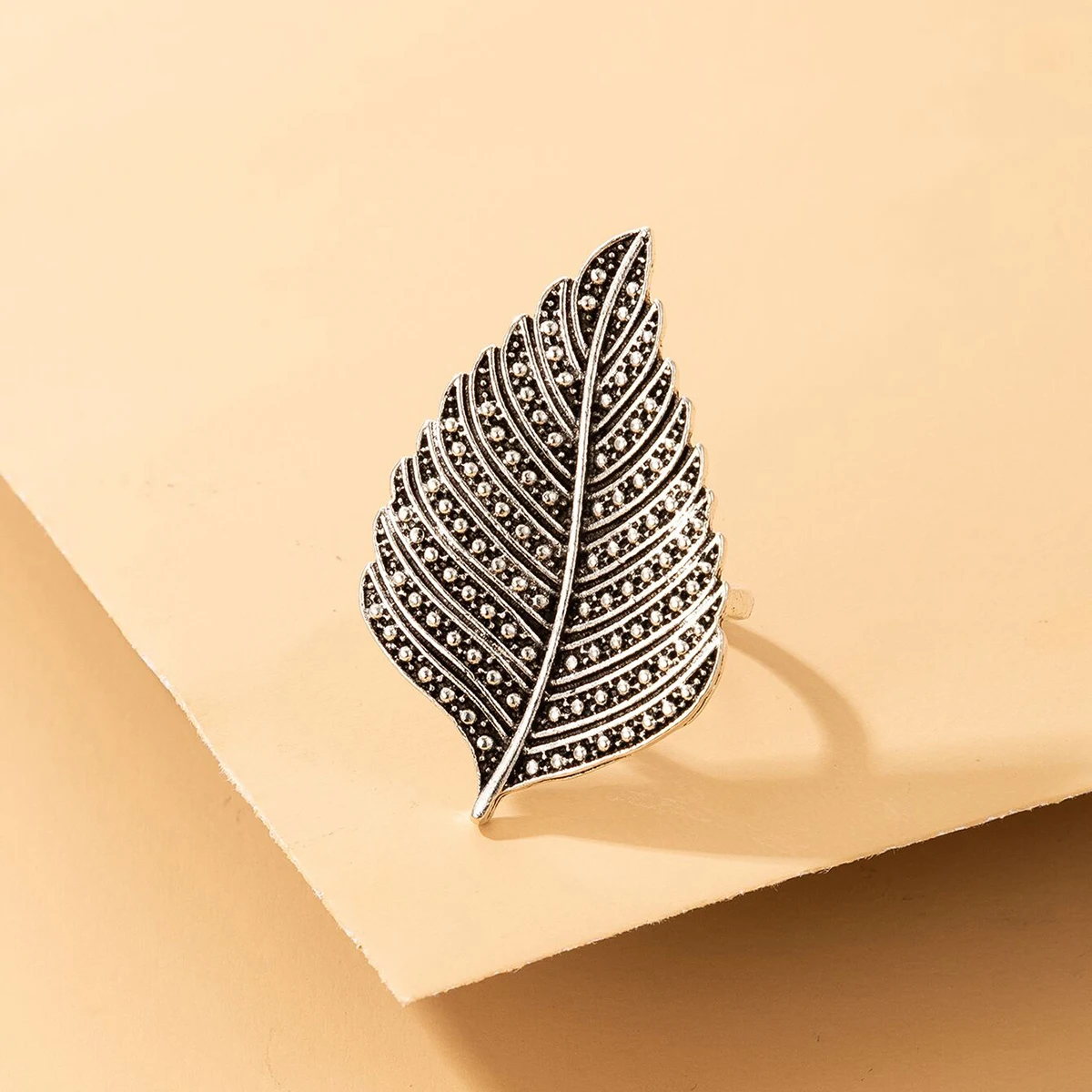Fleepmart Ancient Silver Color Leaf Joint Ring for Women Big Geometric Alloy Metal Single Ring Jewelry Accessories Anillo