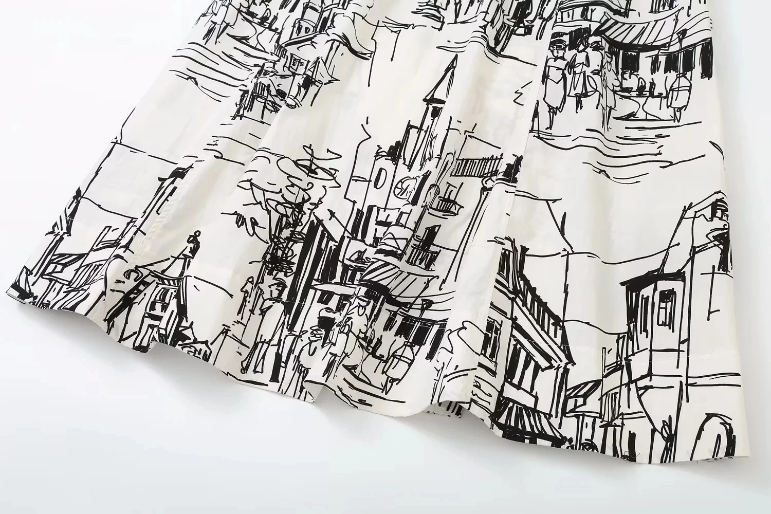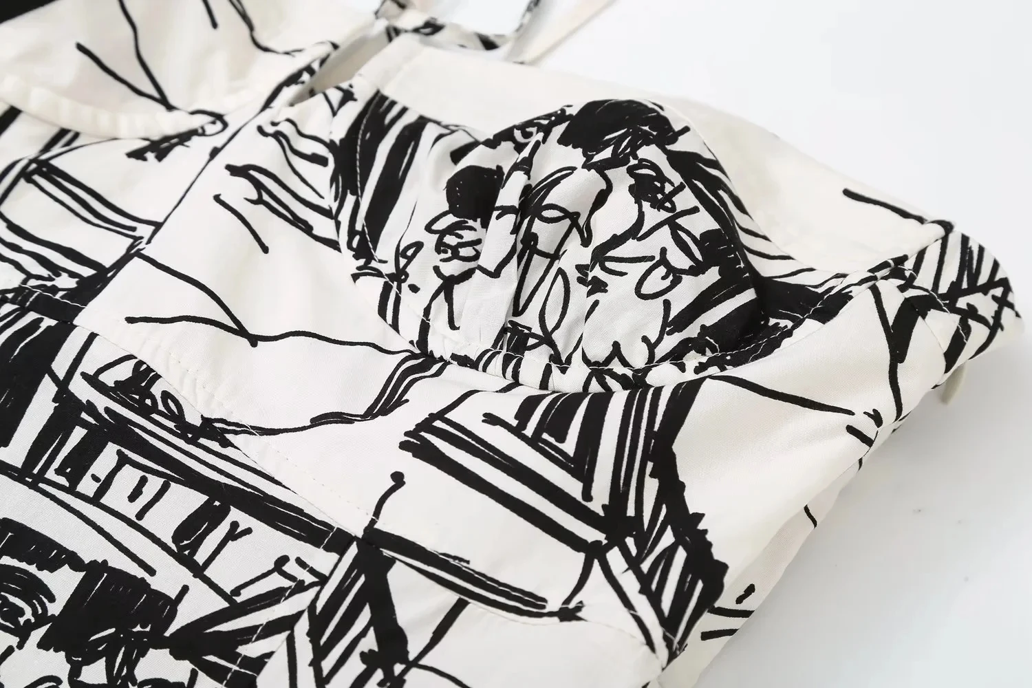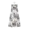 Fleepmart Architecture Printed Fashion New In Women Summer Halter Dress Sexy Party A-line White Maxi Black Vestidos Beach Boho Dress 2024