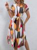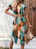 Fleepmart Autumn Dress To Impress European American cross-border women’s elegant summer full print bat wing sleeve belt dress fashionable women’s clothing