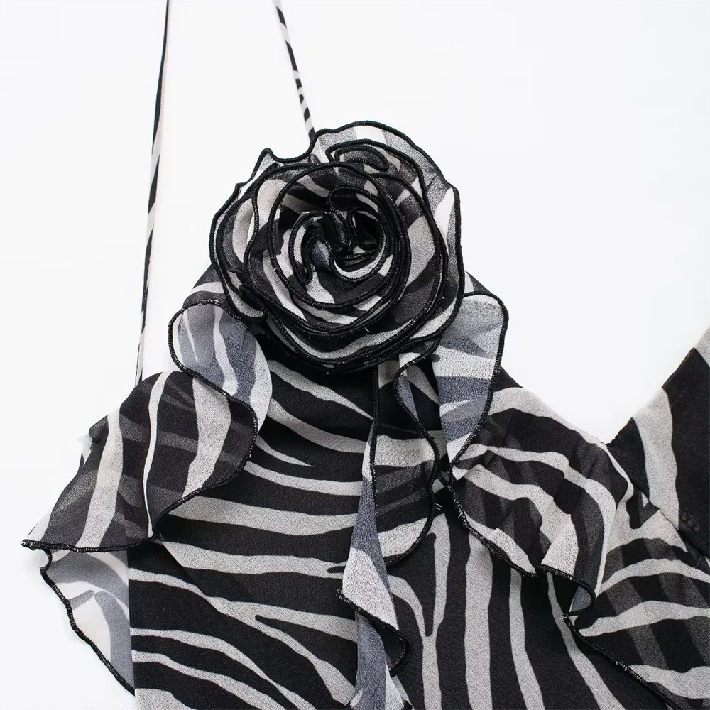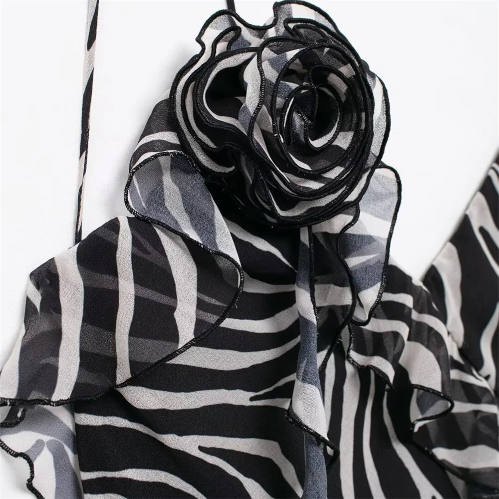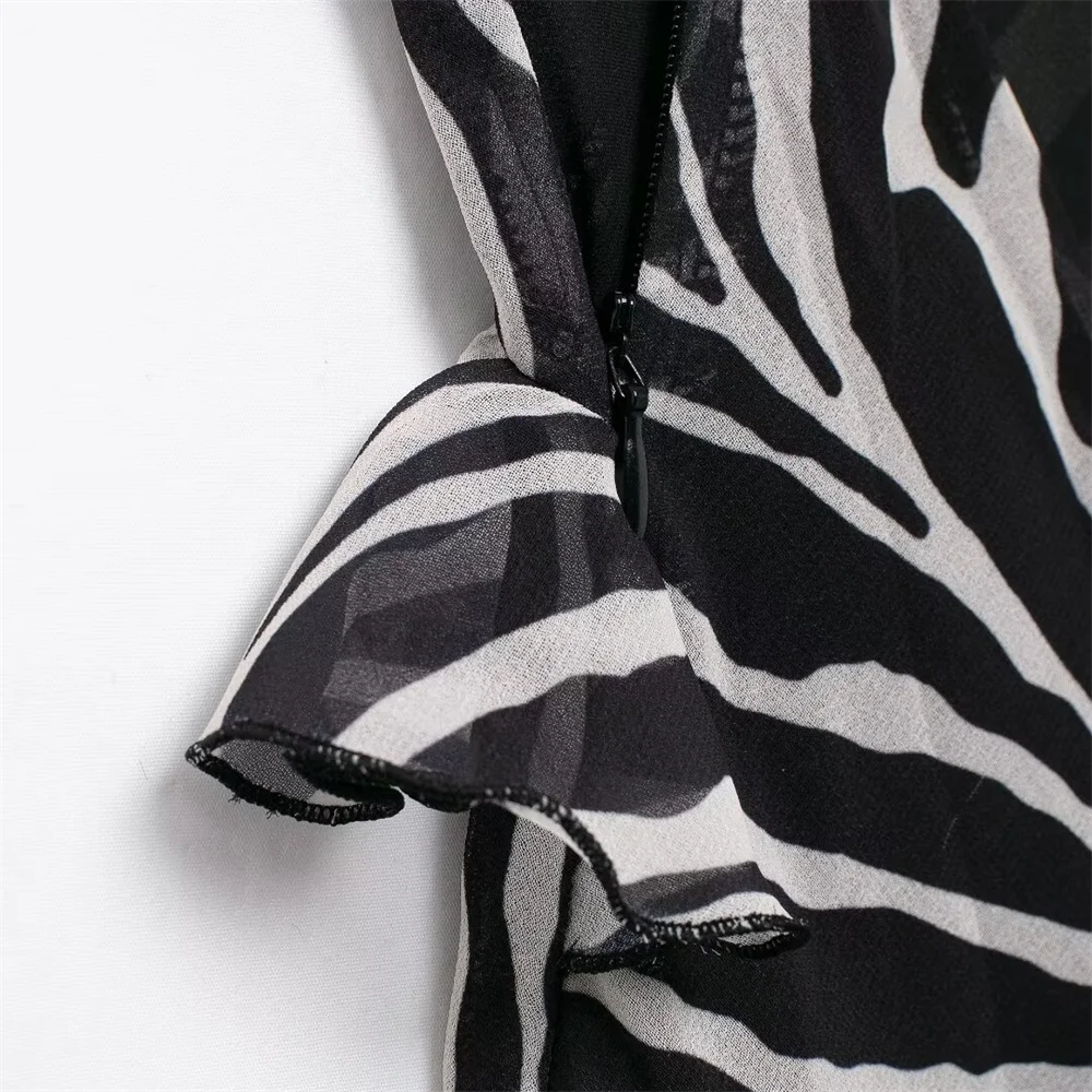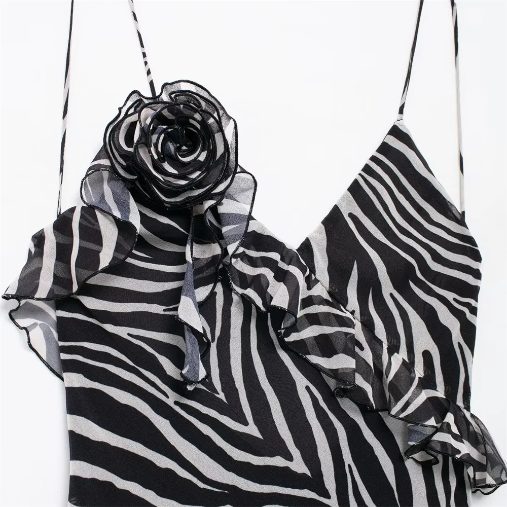 Fleepmart autumn new women’s fashionable slim fit long ruffle animal print backless suspender dress