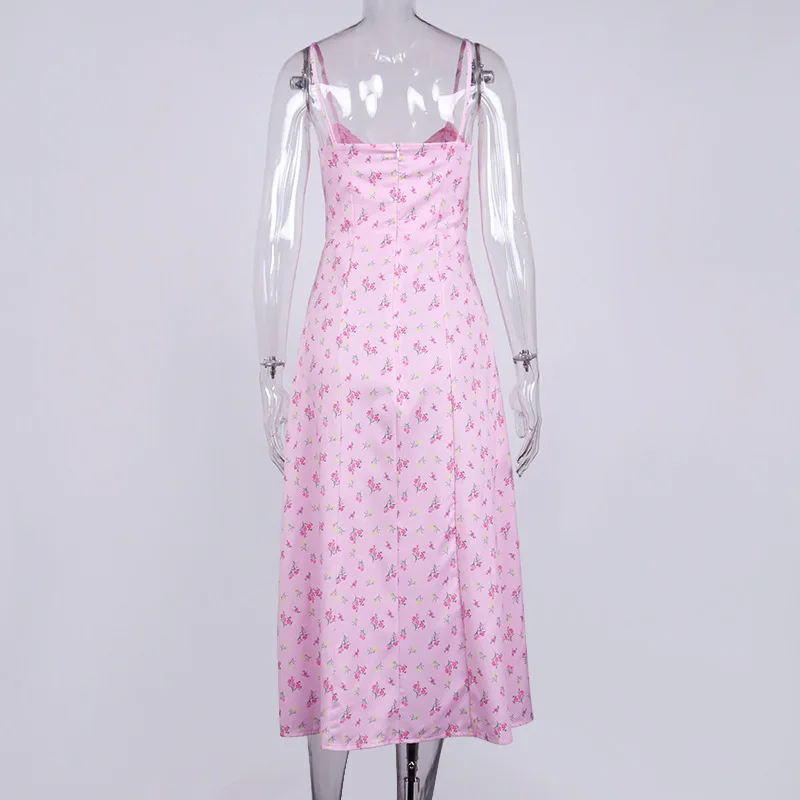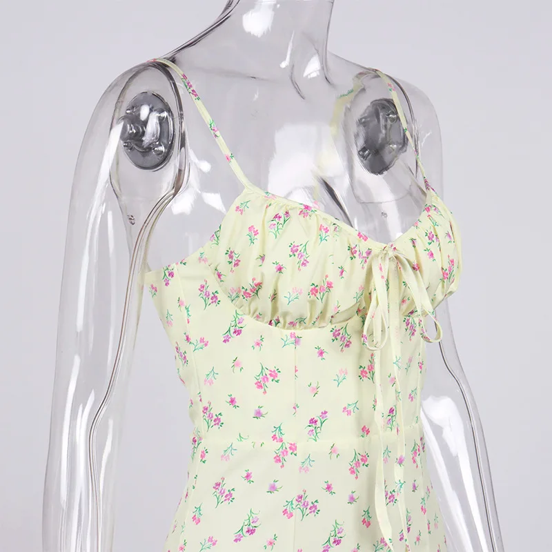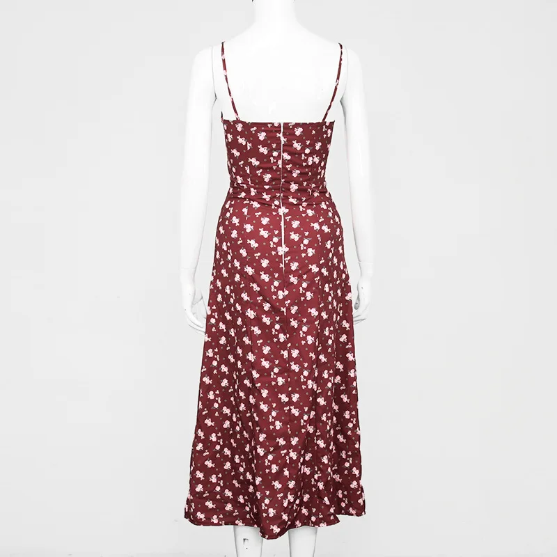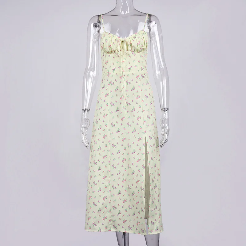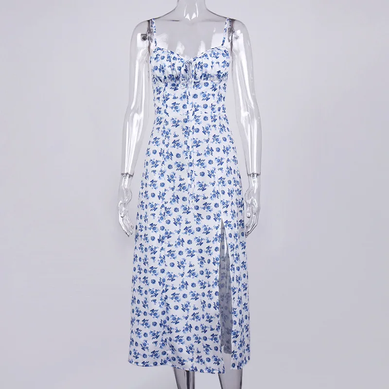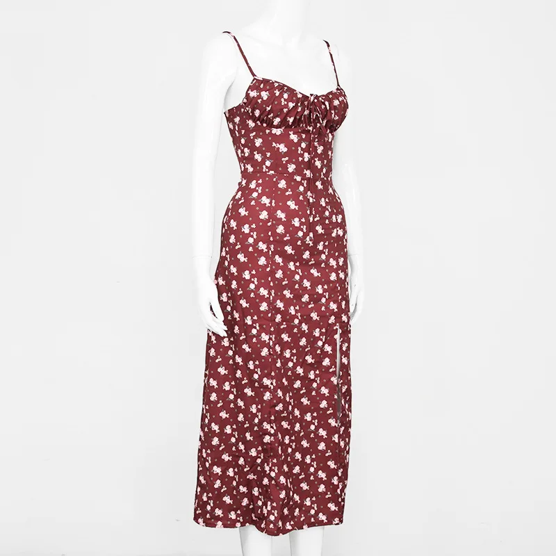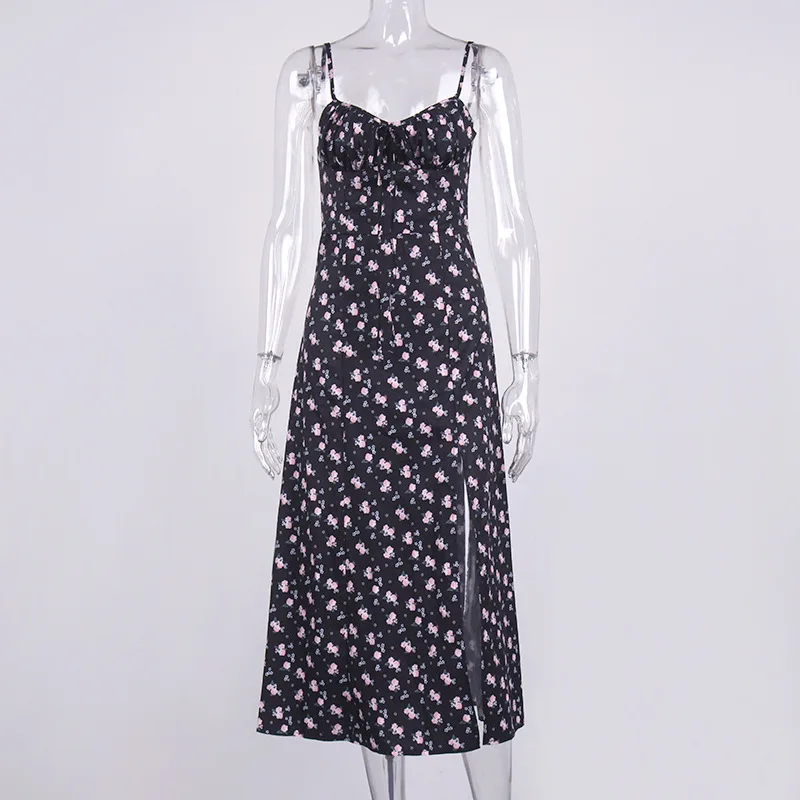 Fleepmart Autumn Sleeveless Vintage Floral Dress Women Casual Lace Up Front Print Dress Female Elegant Long Midi Party Vestidos Side Slit