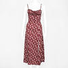 Fleepmart Autumn Sleeveless Vintage Floral Dress Women Casual Lace Up Front Print Dress Female Elegant Long Midi Party Vestidos Side Slit