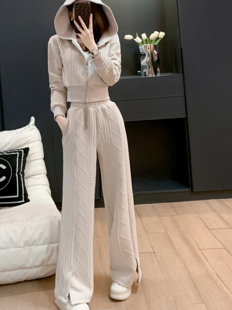 Fleepmart Autumn Solid Casual Sport Two Piece Set Women Crop Jacket and Tracksuit Joggers Running Suit Female Chic Elegant Clothes New