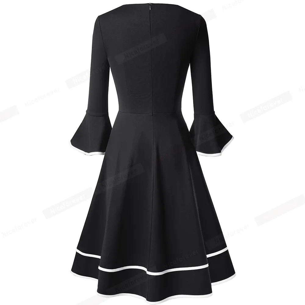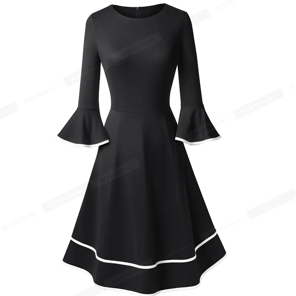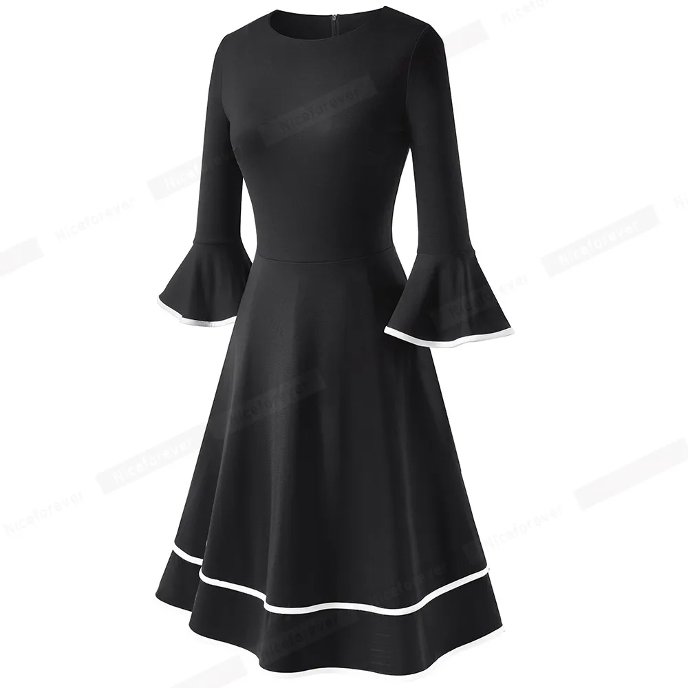 fleepmart  Autumn Solid Color with Flare Sleeve Retro A-Line Dresses Christmas Party Swing Women Dress0-c140ed.jpeg