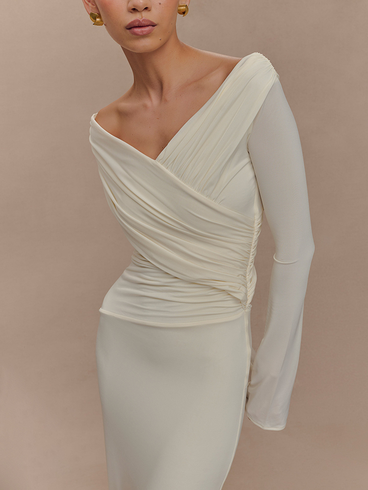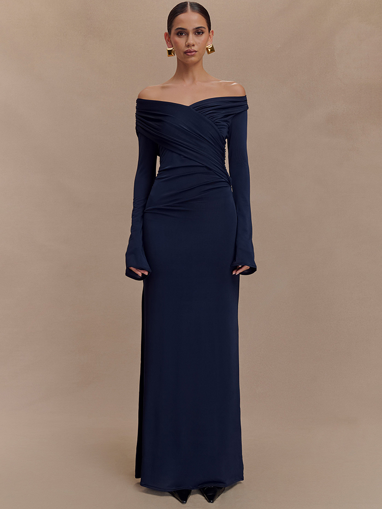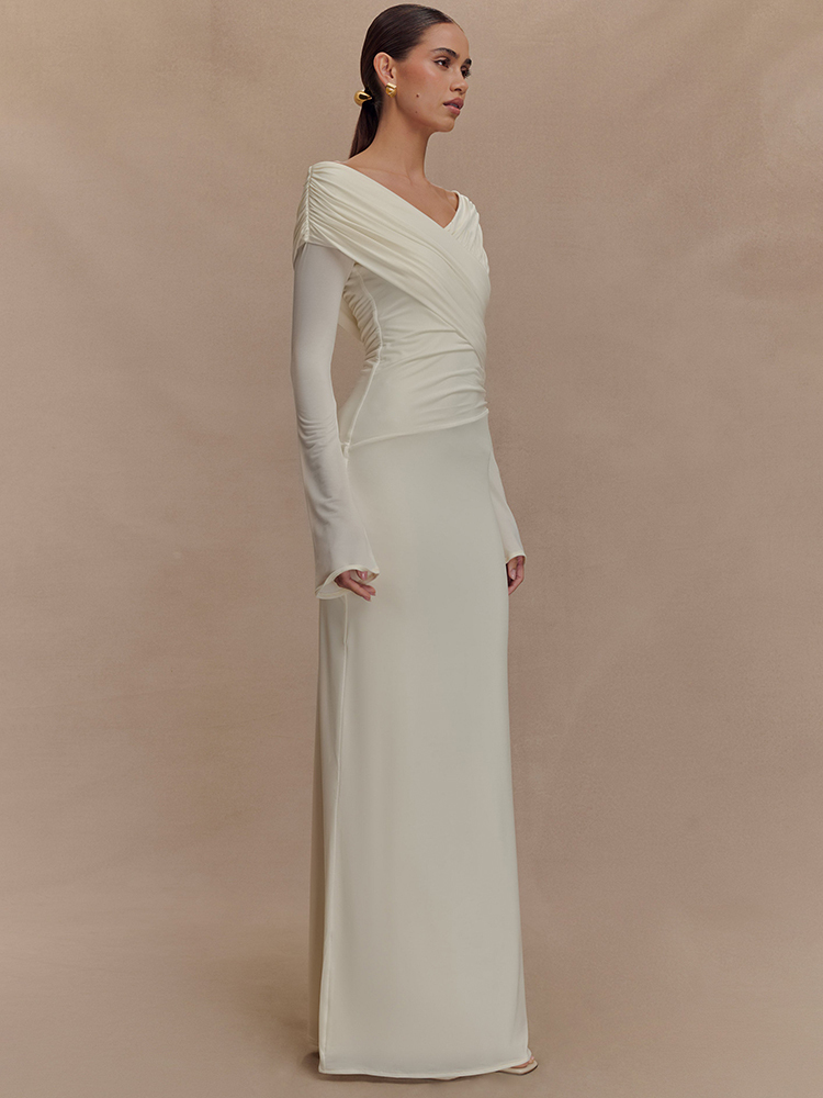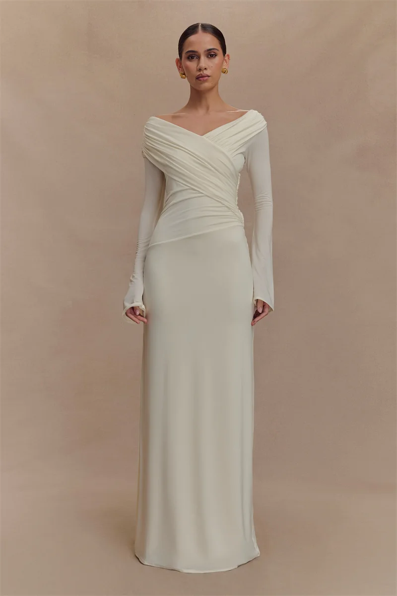 Fleepmart Autumn V Neck Long Sleeve Sexy Maxi Dress For Women Gown Fashion Solid High Waist Ruched Bodycon Club Long Dresses
