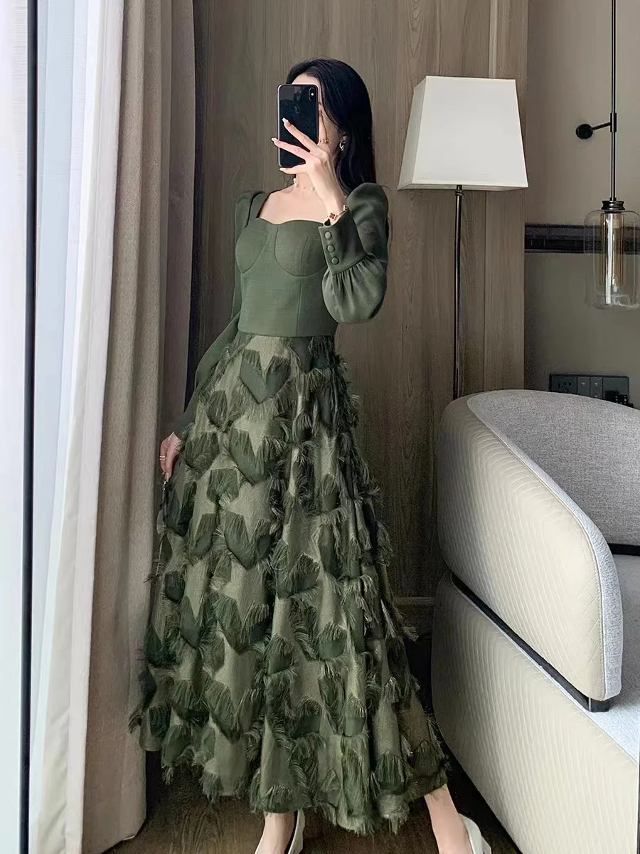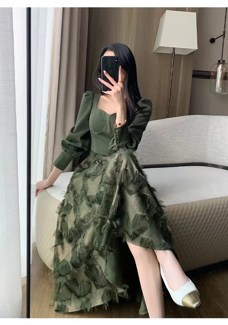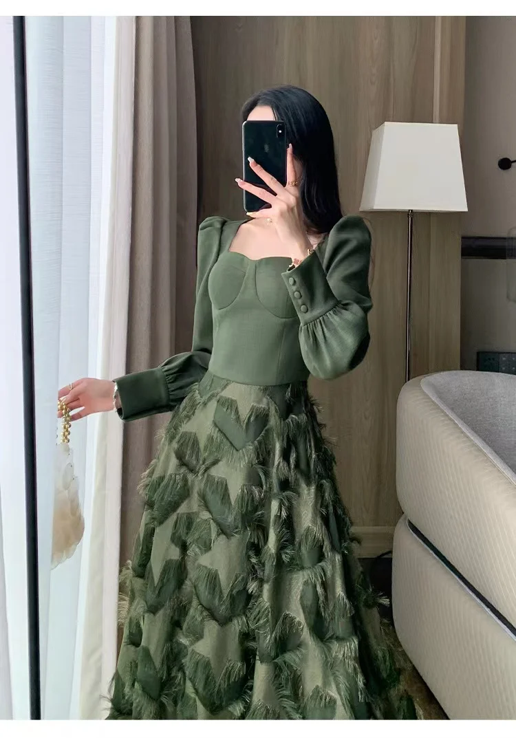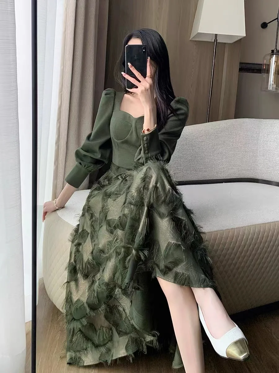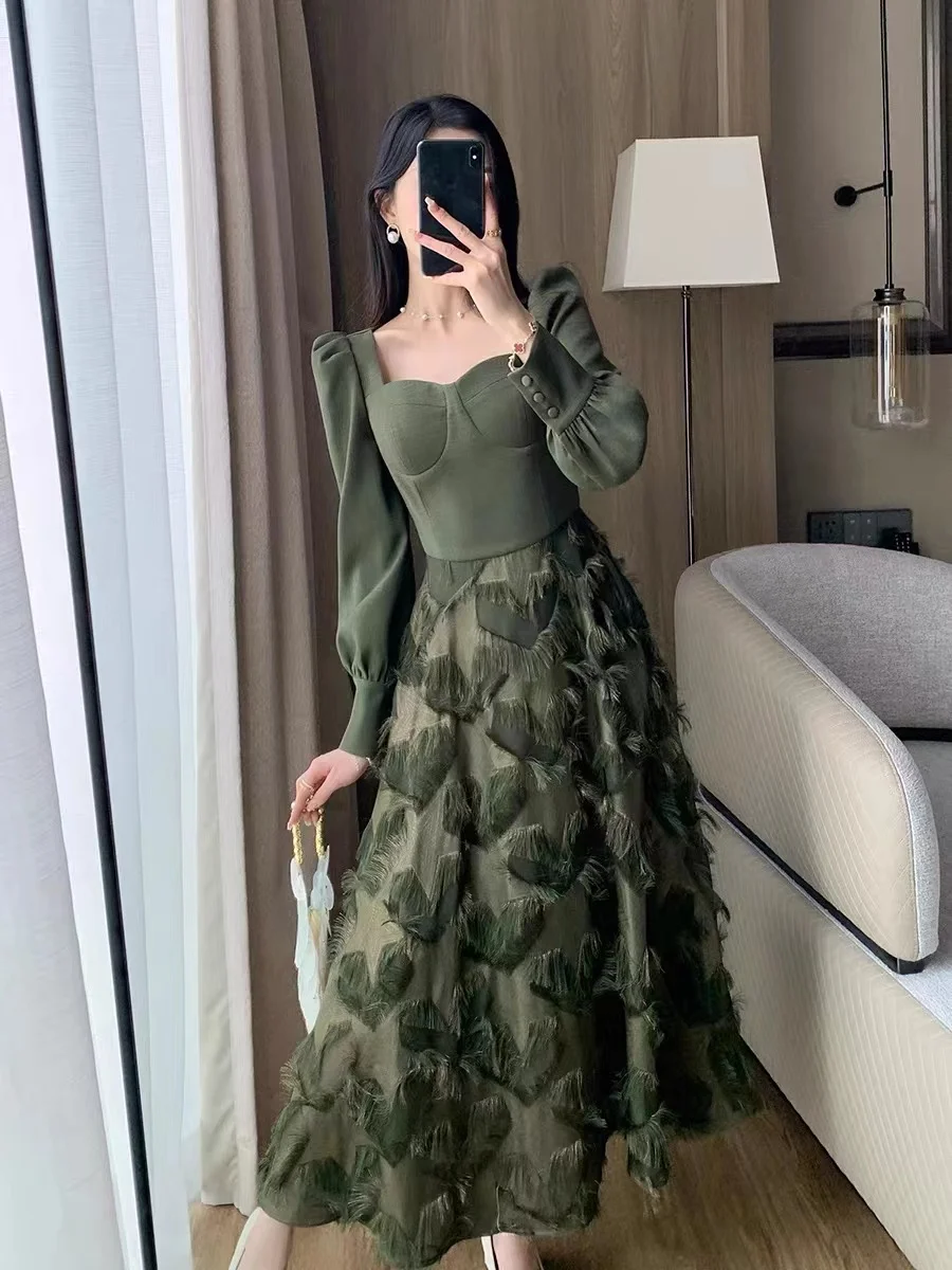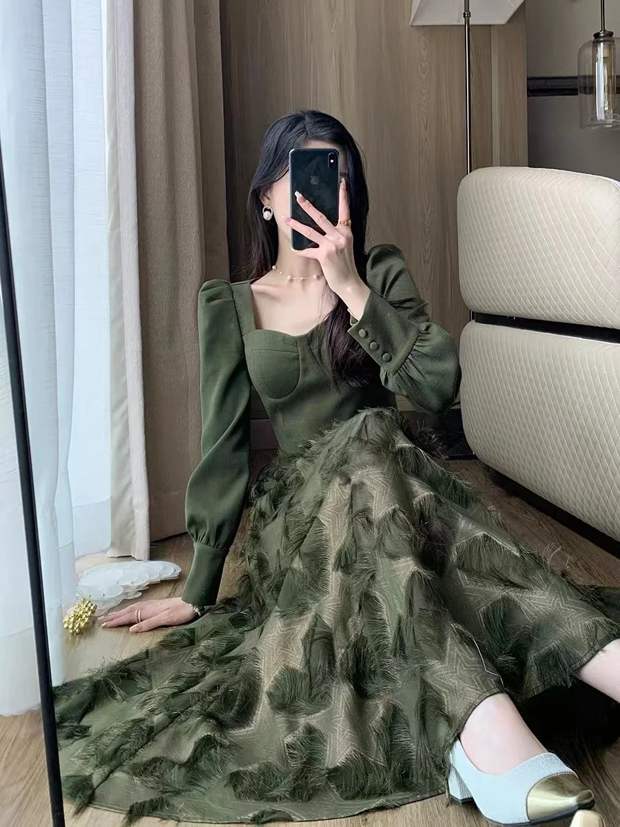 Fleepmart Autumn Vintage Casual Women Dress Elegant and Chic A-Line Party Prom Dresses Fashion New Patchwork Female Vestidos Robe Mujers