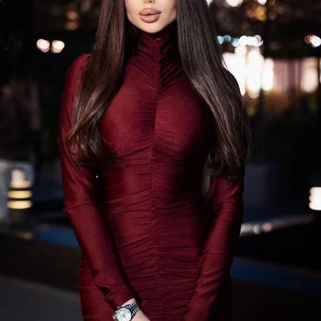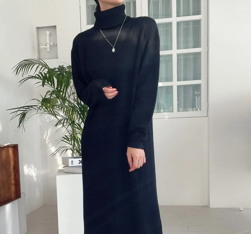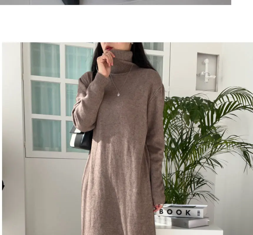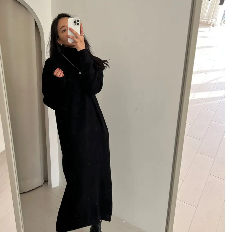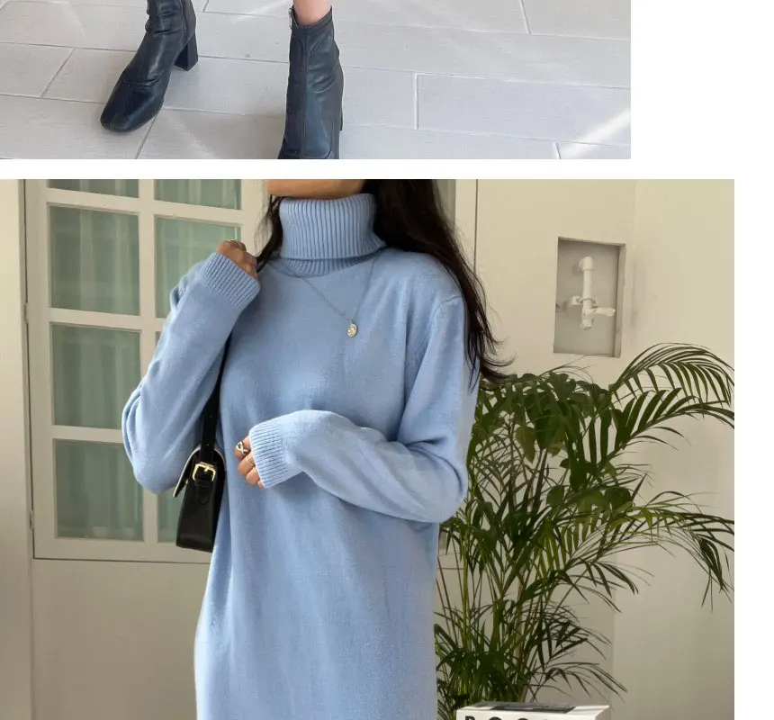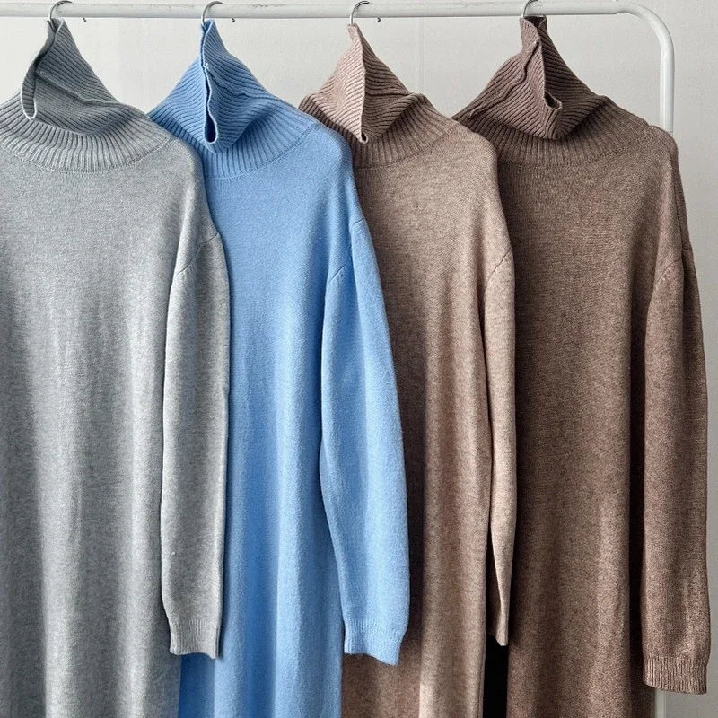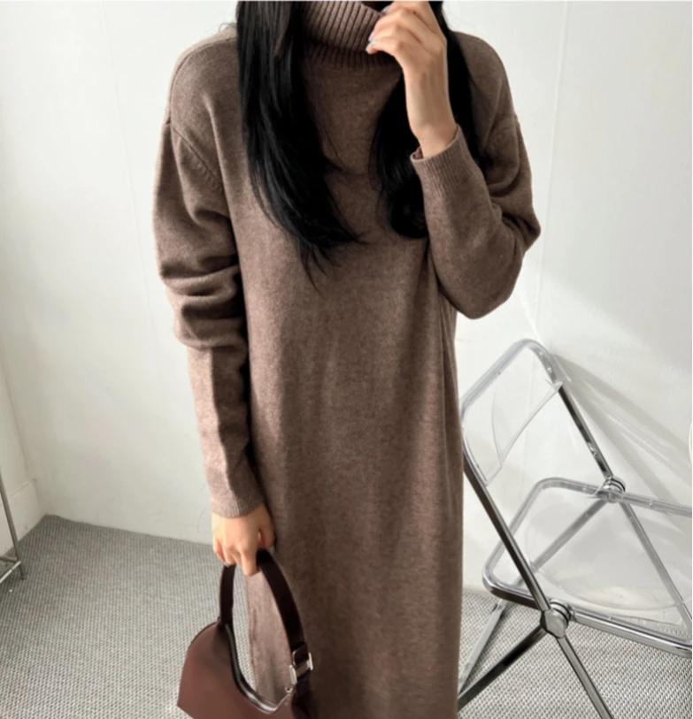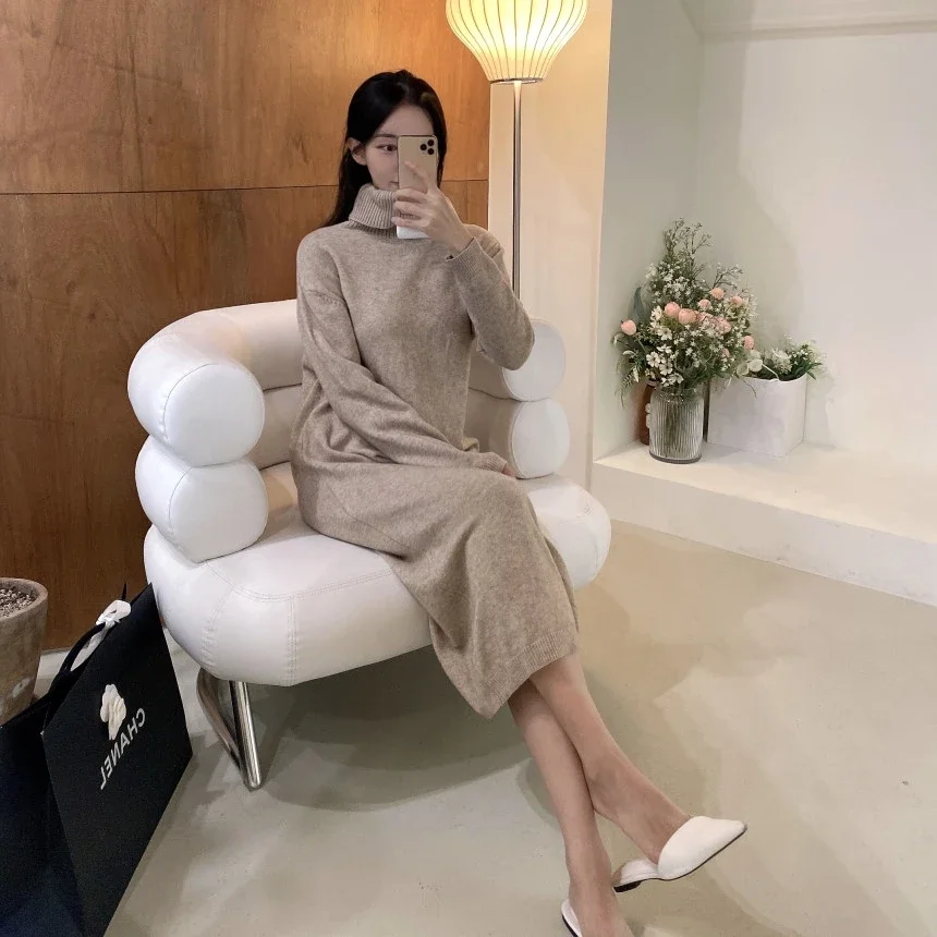 Fleepmart Autumn Winter Turtleneck Loose Women’s Knitted Long Dresses 2025 New Long Sleeve Solid Elegant Straight Dress Female