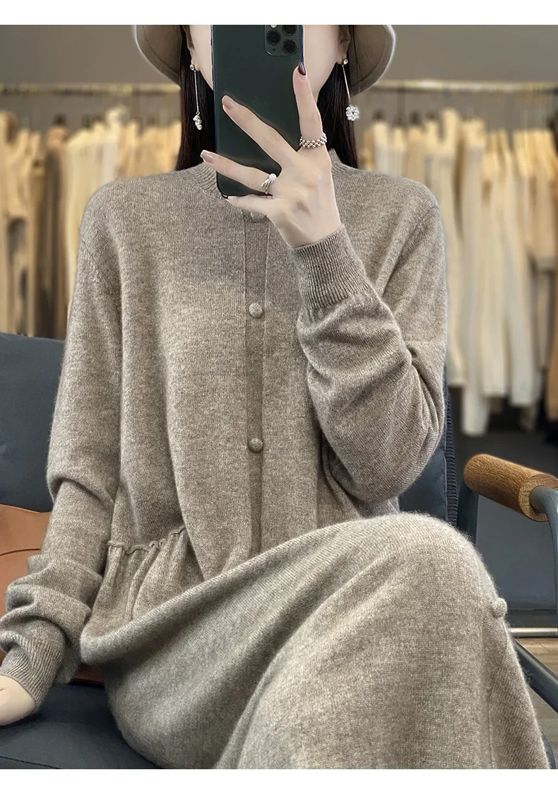 • Pure Wool Material : Crafted from pure wool, this dress offers unparalleled warmth and comfort, perfect for autumn and winter wear.