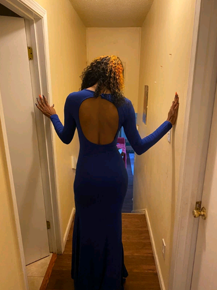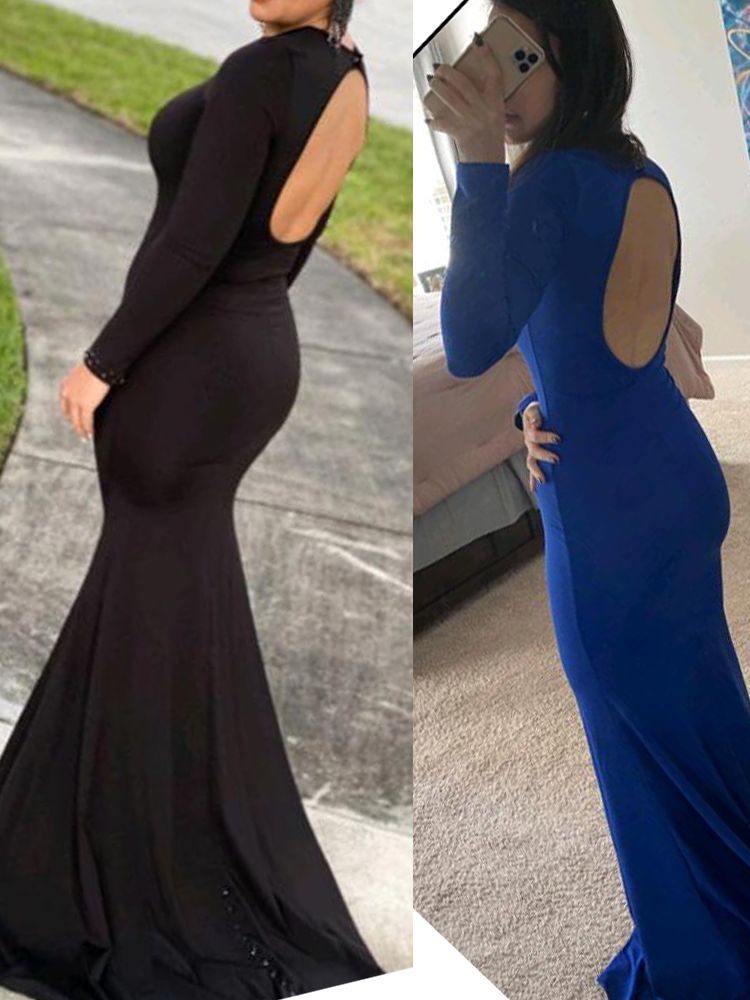 Fleepmart Backless Long Sleeved Floor Length Black Dress Stretch Evening Party Solid Mermaid Prom Long Gown Blue Red
