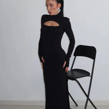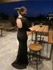 Fleepmart Backless Long Sleeved Floor Length Black Dress Stretch Evening Party Solid Mermaid Prom Long Gown Blue Red
