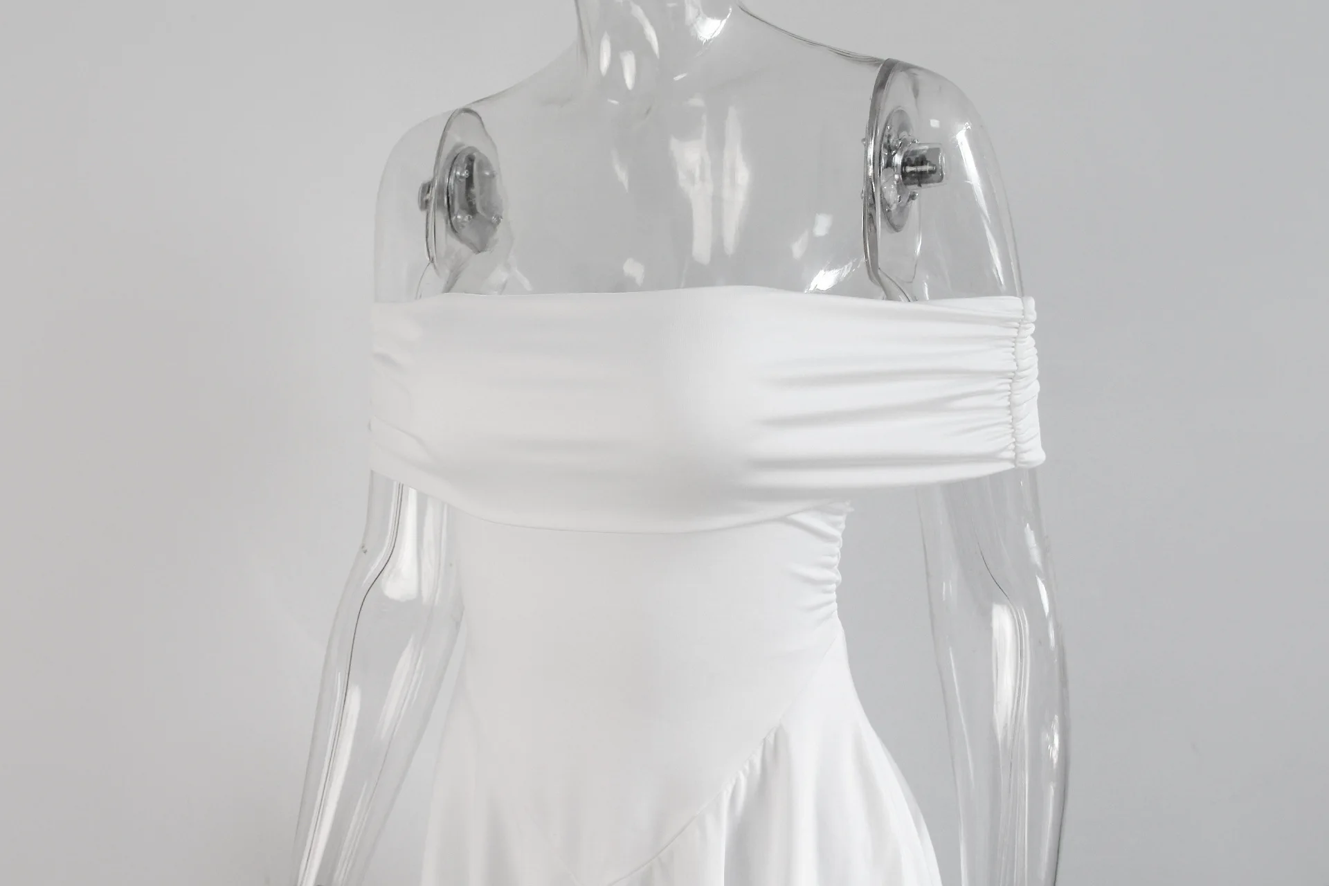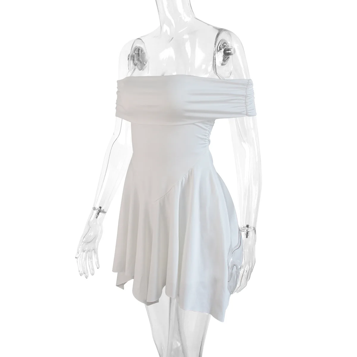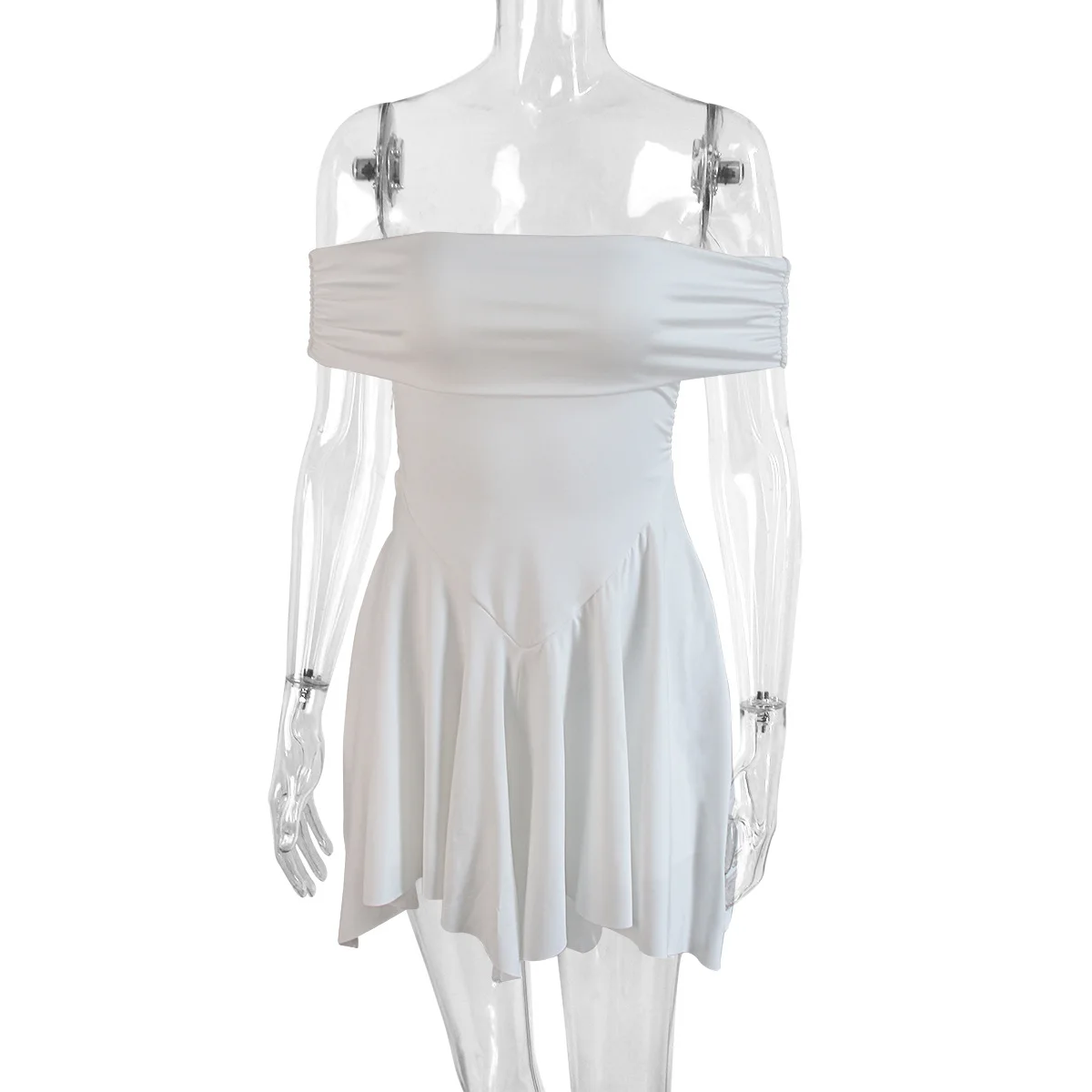 Fleepmart Backless Ruched Bodycon Mini Dress Women 2023 Summer Off Shoulder Sexy Dress Pleated Sundress Beachwear Vestidos
