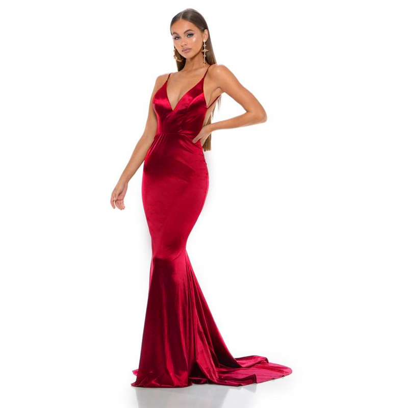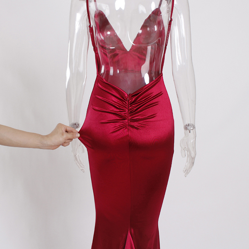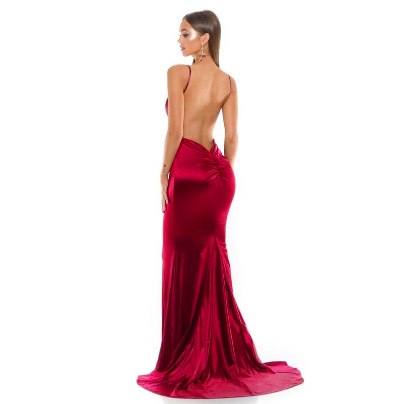 Fleepmart Backless Satin Evening Dress Gown Strappy Deep V Neck Floor Length Prom Padded Stretch Wedding Party Dresses
