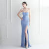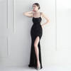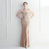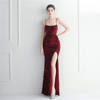 Fleepmart Backless Sexy Slit Long Sequin Party Evening Dresses Luxury V Neck Velvet Stretch Sleeveless Cocktail Prom Dress