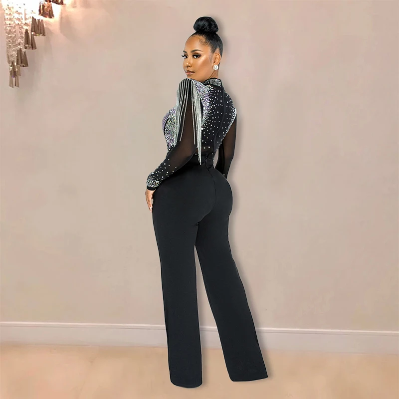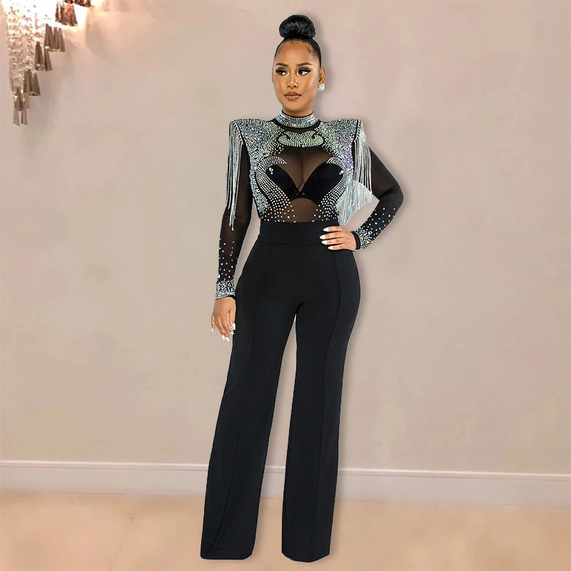 Fleepmart Ball Christmas Party High Neck Jumpsuit Evening Dress Sexy Perspective Hot Diamond Tassel Club Women’s Long Sleeve Tight PantsFleepmart Ball Christmas Party High Neck Jumpsuit Evening Dress Sexy Perspective Hot Diamond Tassel Club Women’s Long Sleeve Tight Pants