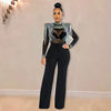Fleepmart Ball Christmas Party High Neck Jumpsuit Evening Dress Sexy Perspective Hot Diamond Tassel Club Women’s Long Sleeve Tight Pants