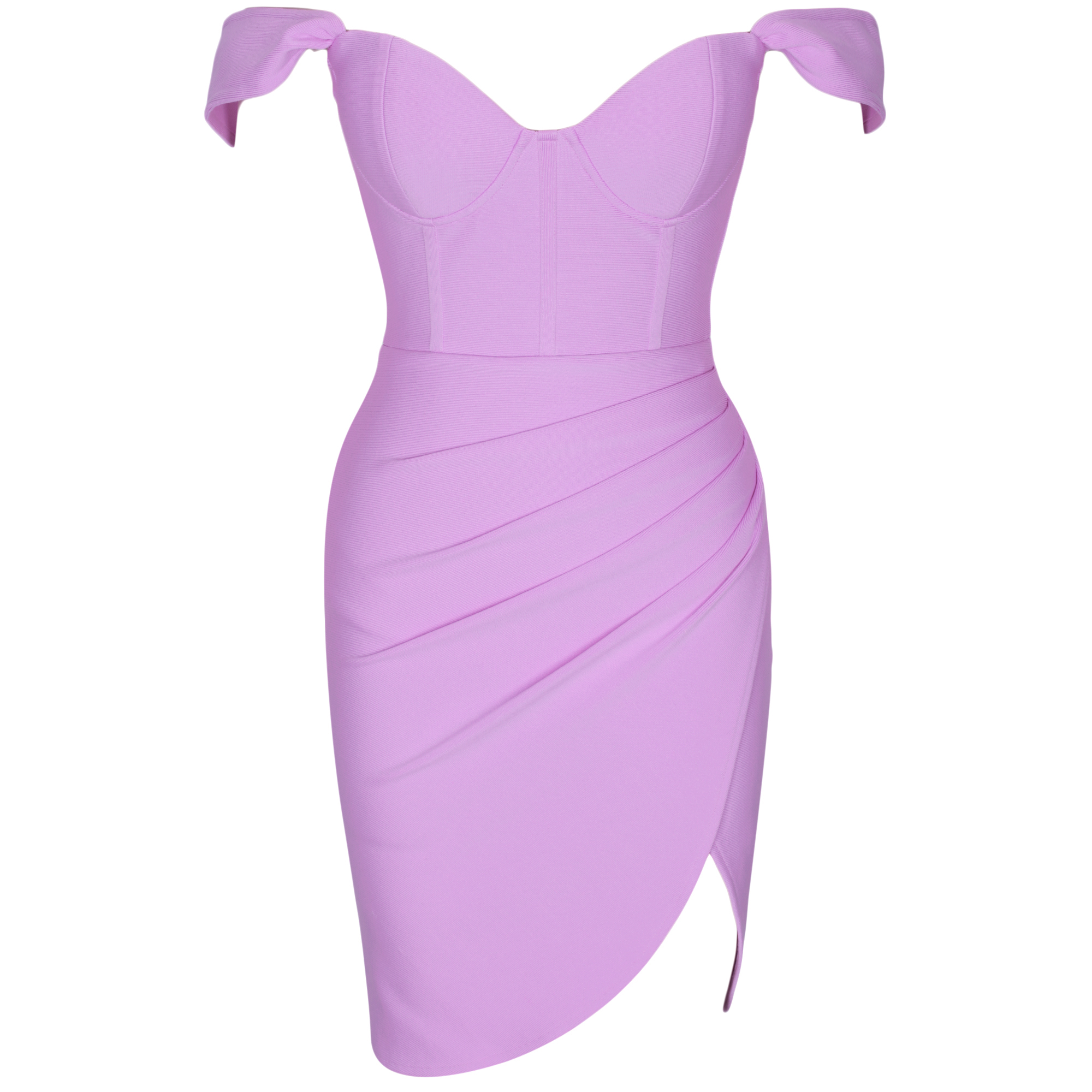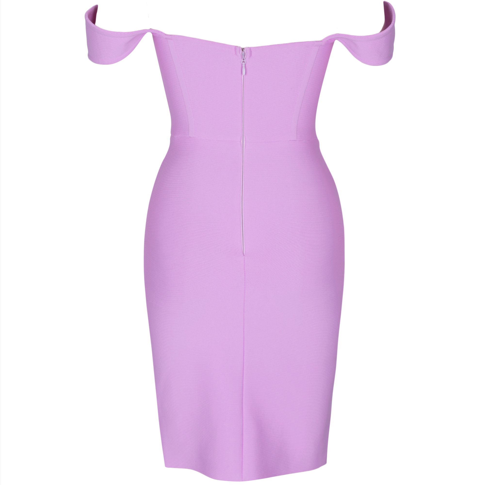 Fleepmart Bandage Dress 2021 Summer Lilac Purple Bodycon Dress for Women Draped Off Shoulder Party Dress Evening Birthday Club Outfits