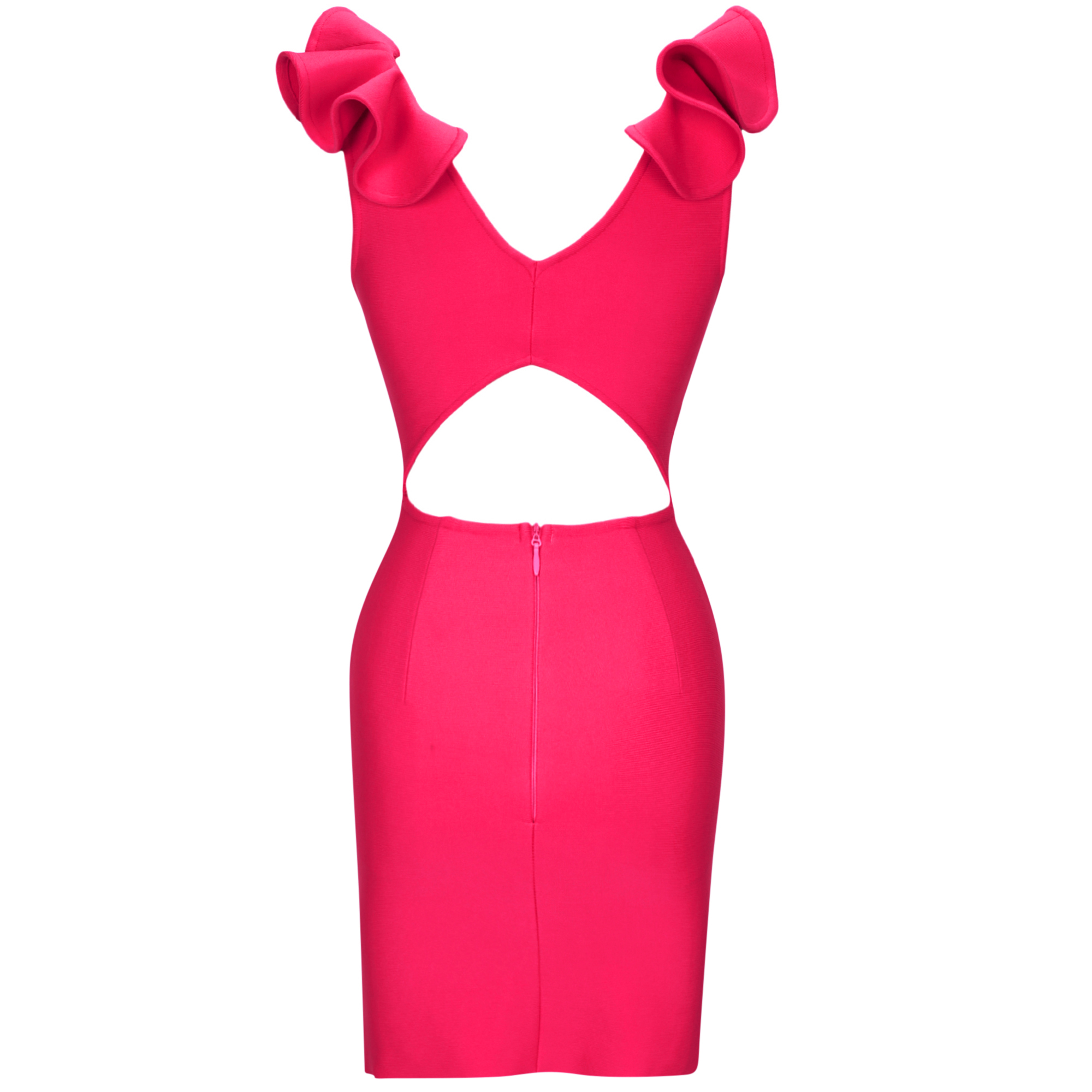 Fleepmart Bandage Dress for Women 2022 Pink Bodycon Dress Summer Ruffle Short Sexy Party Dress Evening Cocktail Birthday Club Outfits
