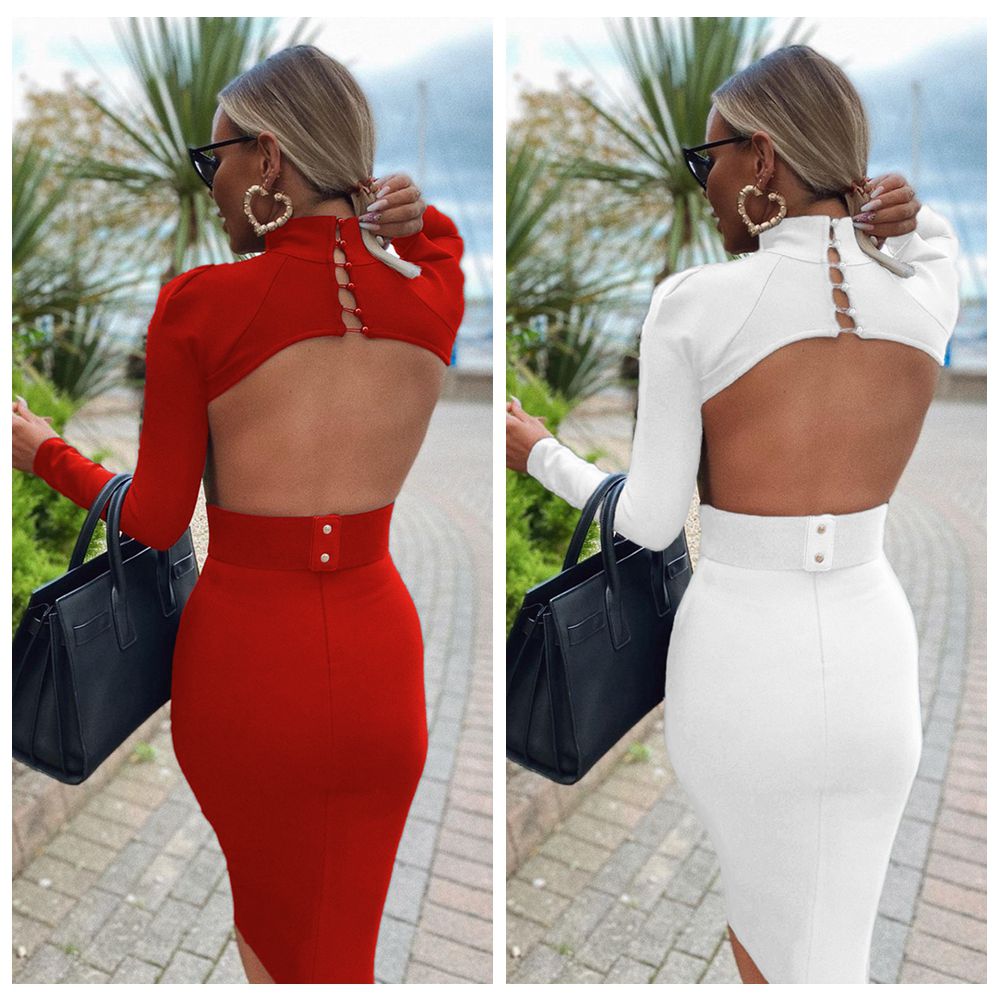 Fleepmart Bandage Dress Women 2022 New Arrival Long Sleeve Party Dress Sexy Backless White Red Black Bodycon Dress Club Outfits