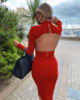 Fleepmart Bandage Dress Women 2022 New Arrival Long Sleeve Party Dress Sexy Backless White Red Black Bodycon Dress Club Outfits