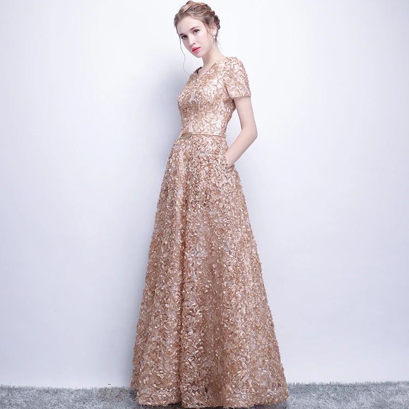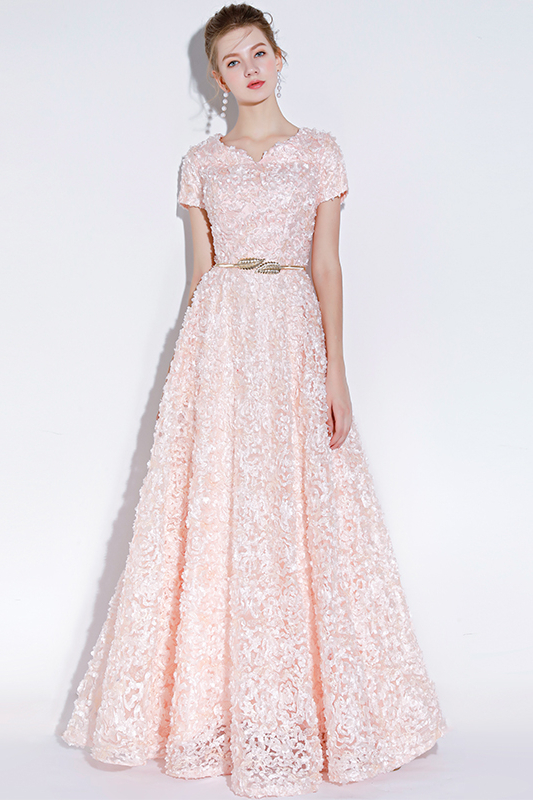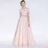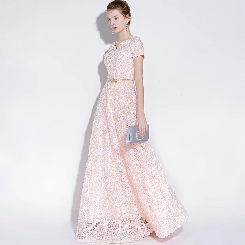 Fleepmart Banquet Elegant Evening Dress Simple Pink Lace Floor-length Formal Dresses with Belt Custom Party Gown Robe De Soiree