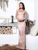 Fleepmart Bare Gold Round Neck Long Sleeve Perspective Back Bodycon Glitter Glued Material Maix Dress