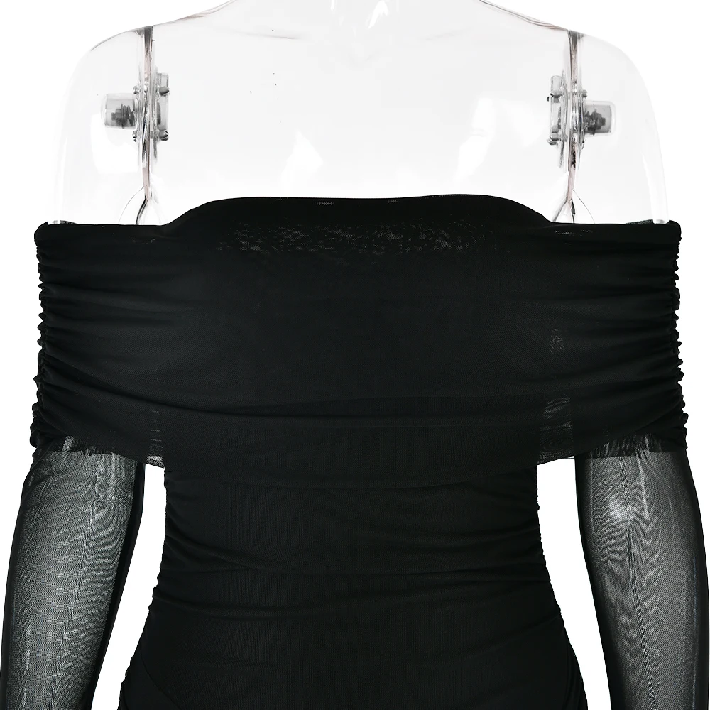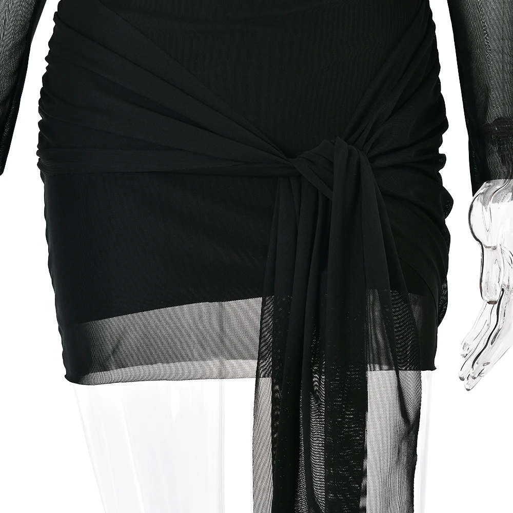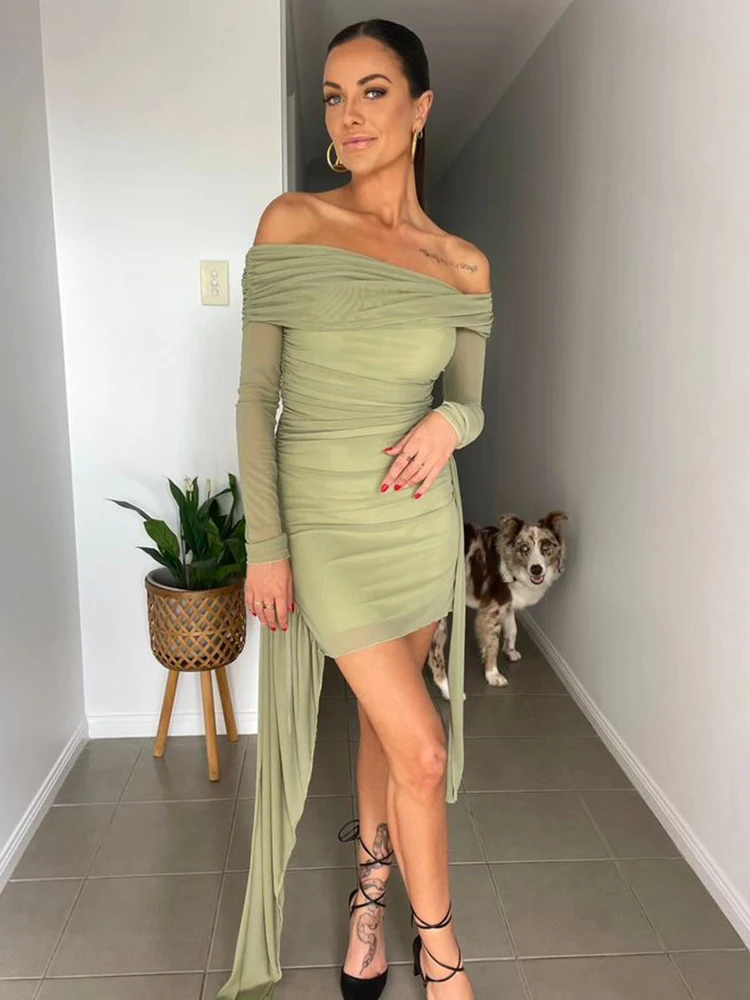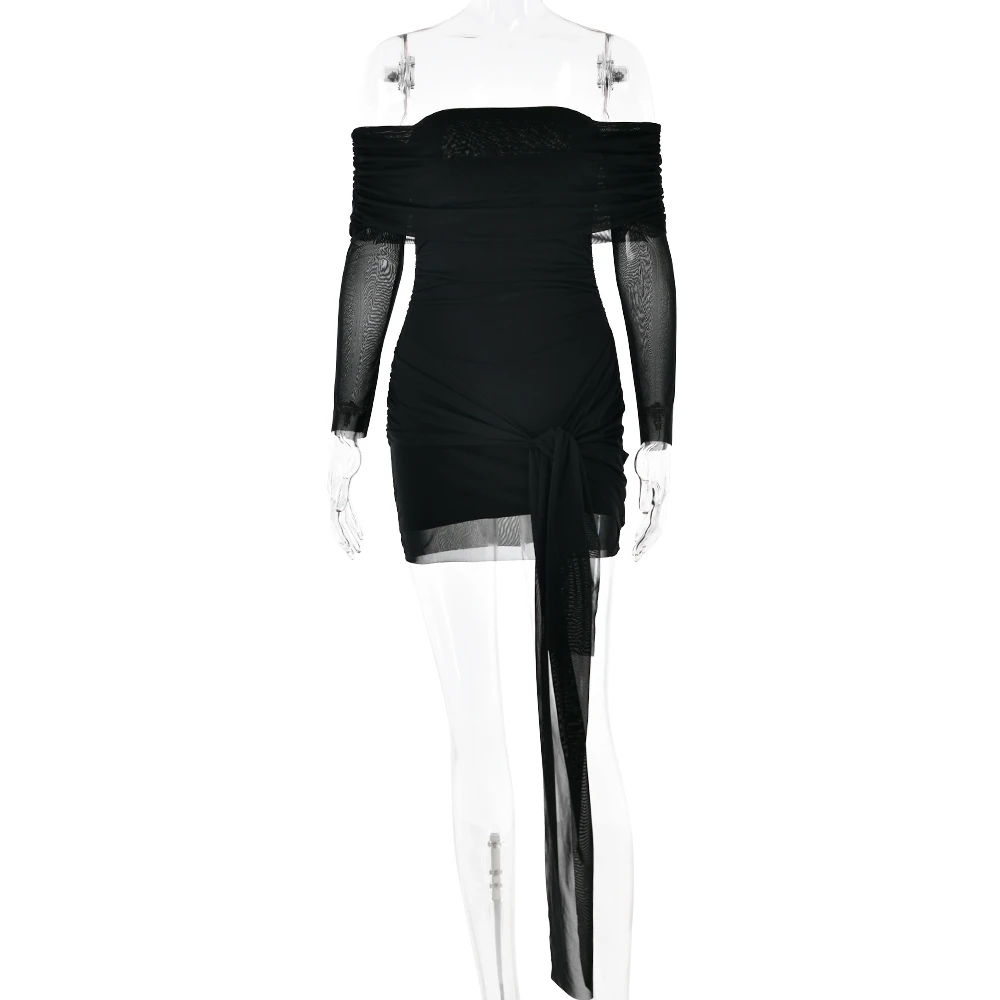 Fleepmart Basic Solid Color Causal Skinny Drawstring Mini Dress Sexy Fashion Long Sleeve Boob Tube Dress 2024 Summer Women Clothes
