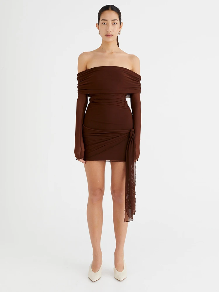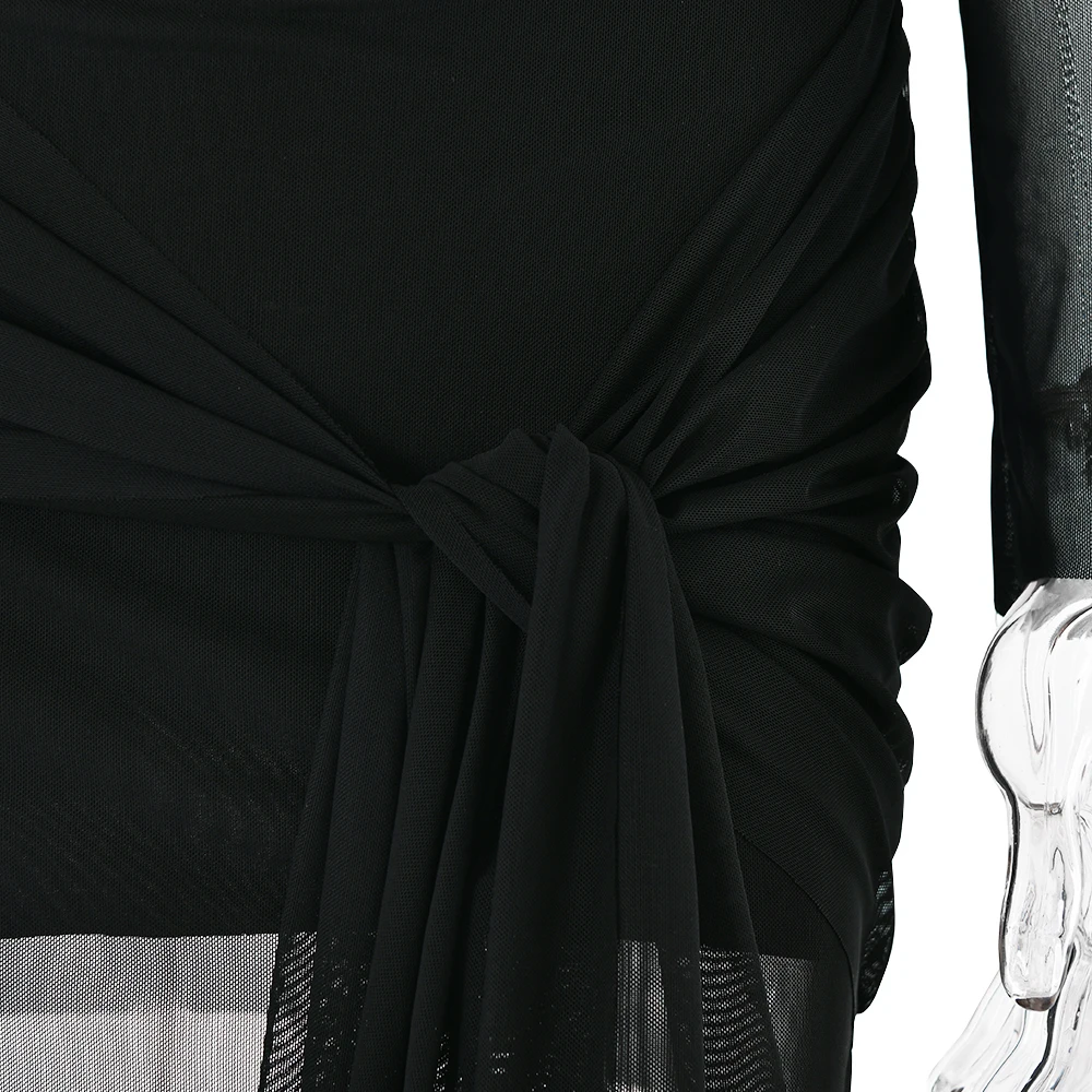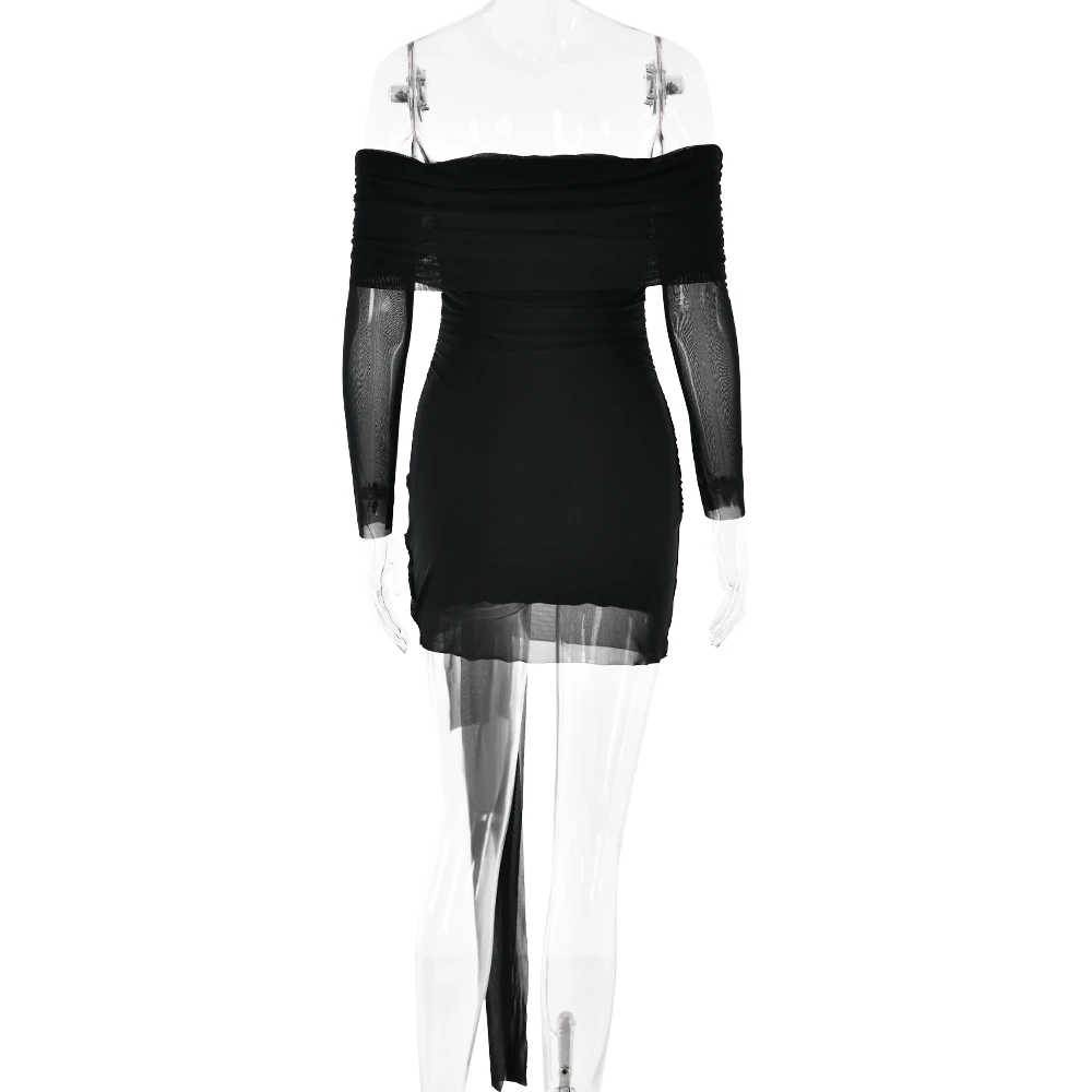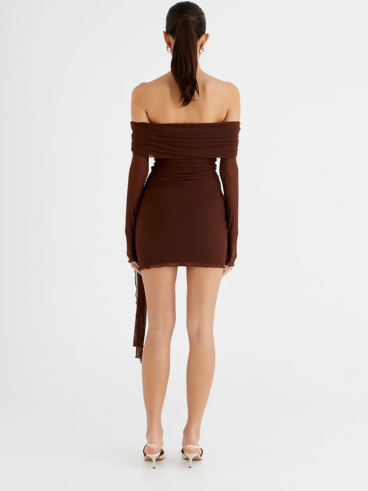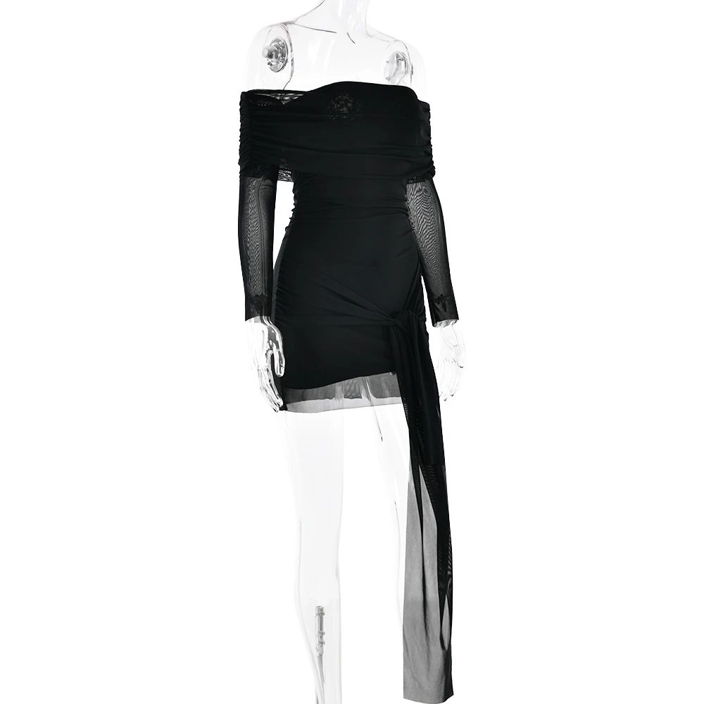 Fleepmart Basic Solid Color Causal Skinny Drawstring Mini Dress Sexy Fashion Long Sleeve Boob Tube Dress 2024 Summer Women Clothes