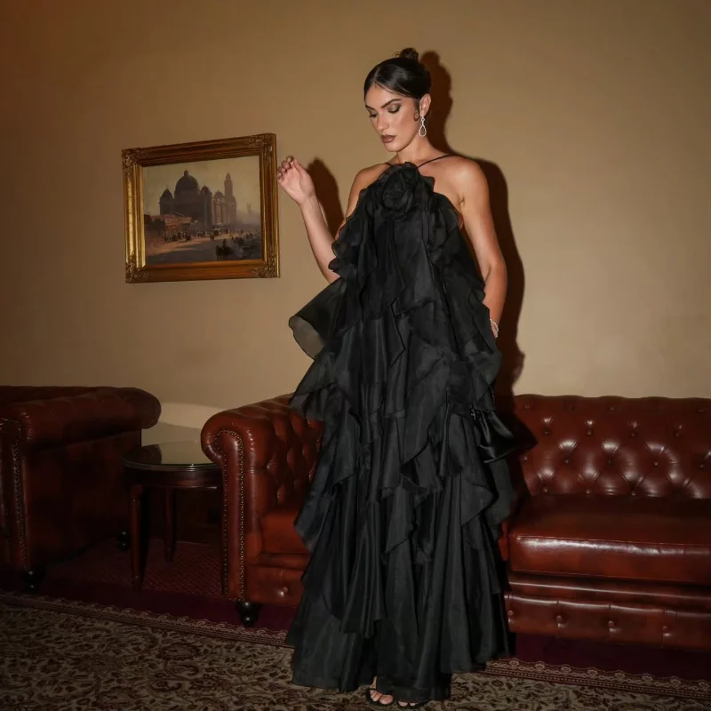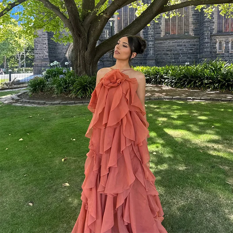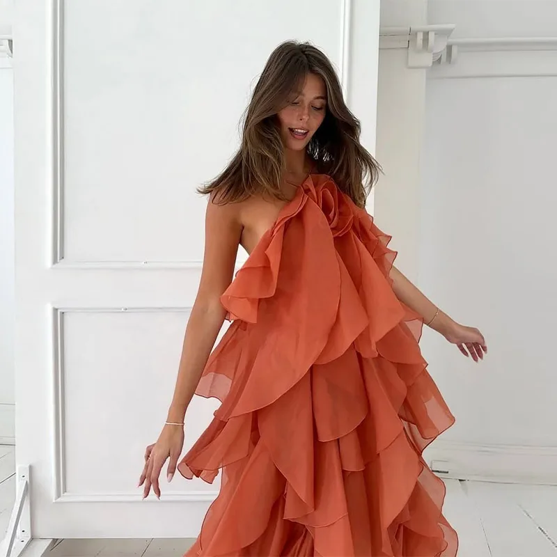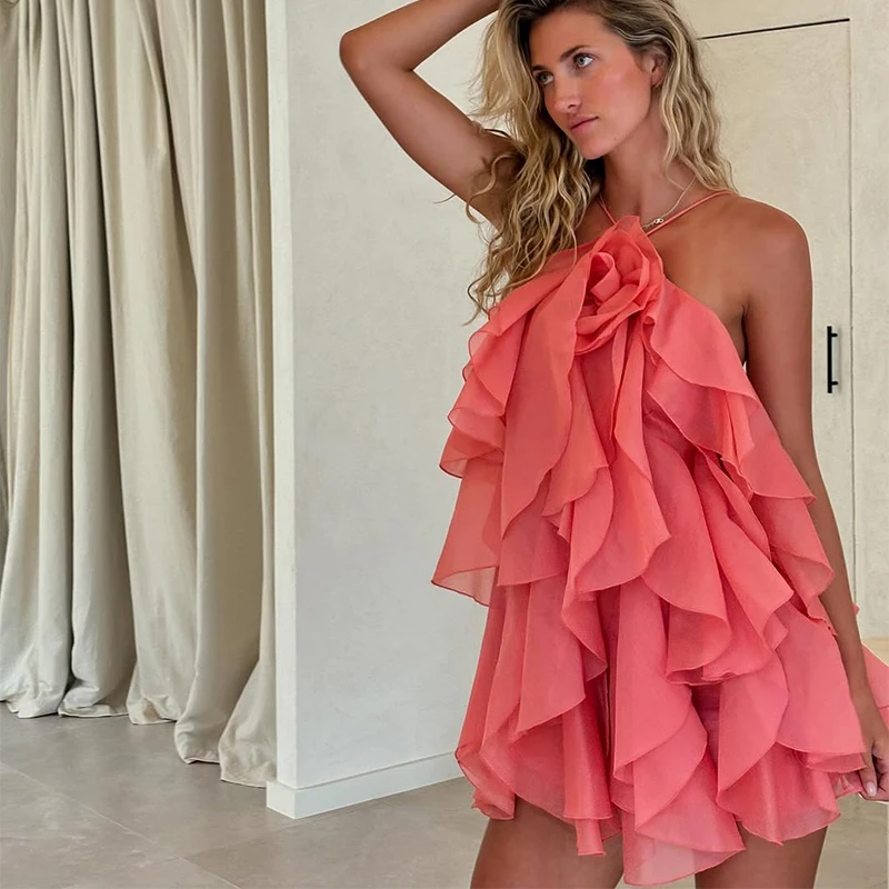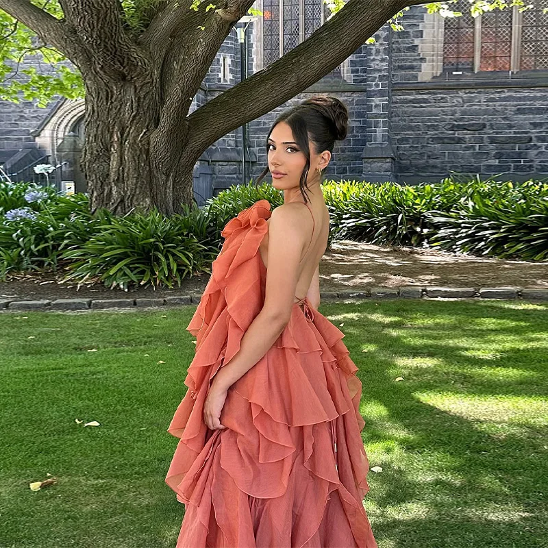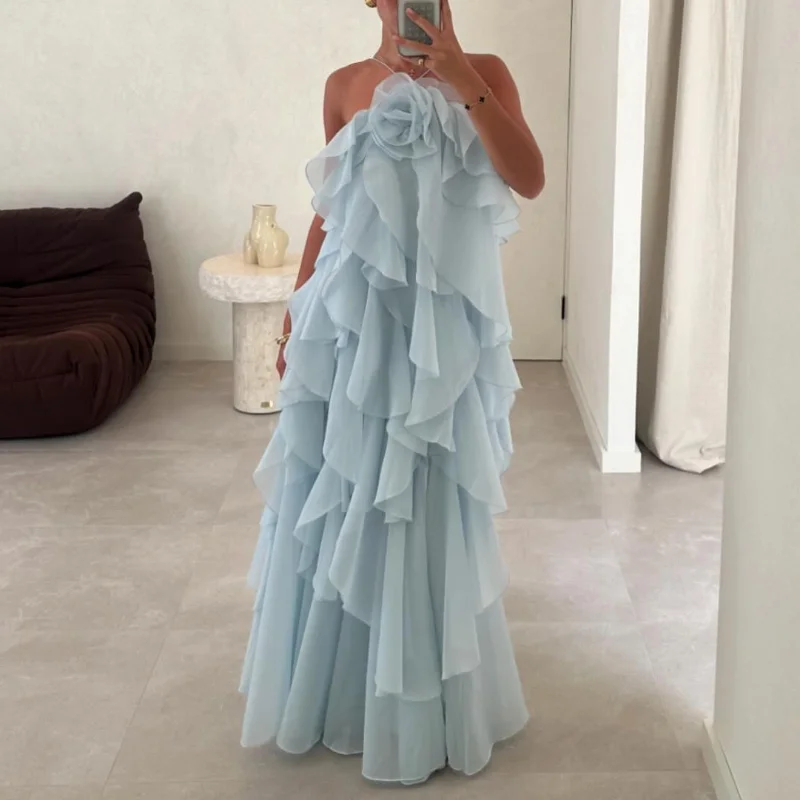 Fleepmart Beach Layer Ruffles Long Dress Women 3d Flower Backless Sleeveless Slim Fit Maxi Dresses Female 2025 Summer Lady Party Robes