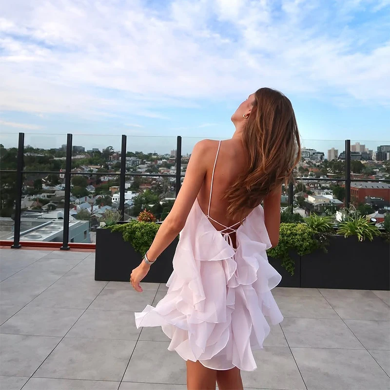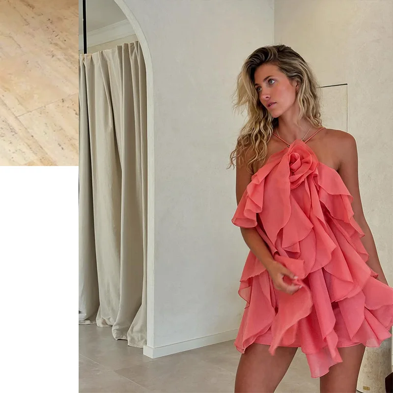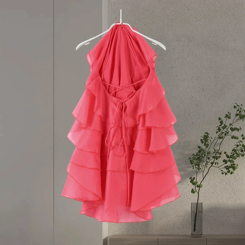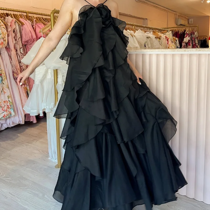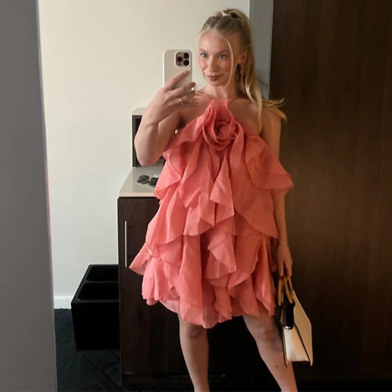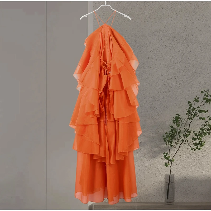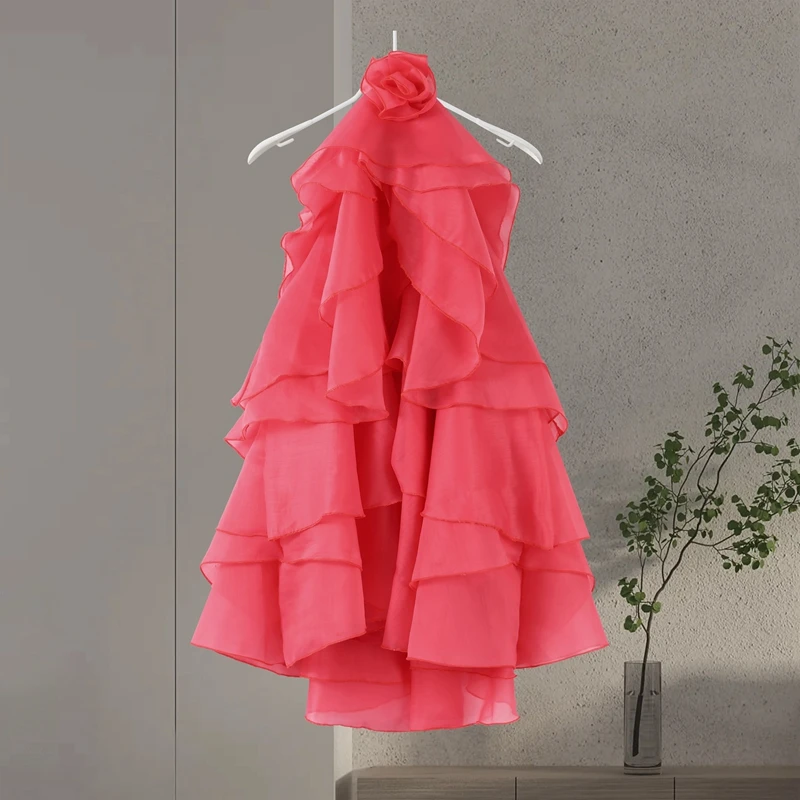 Fleepmart Beach Layer Ruffles Long Dress Women 3d Flower Backless Sleeveless Slim Fit Maxi Dresses Female 2025 Summer Lady Party Robes