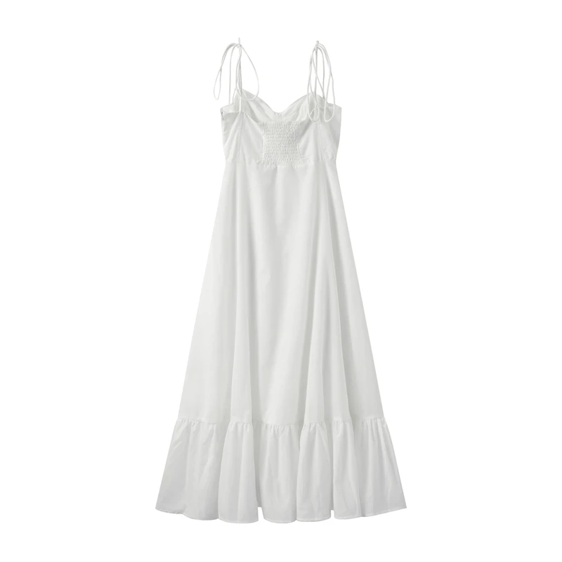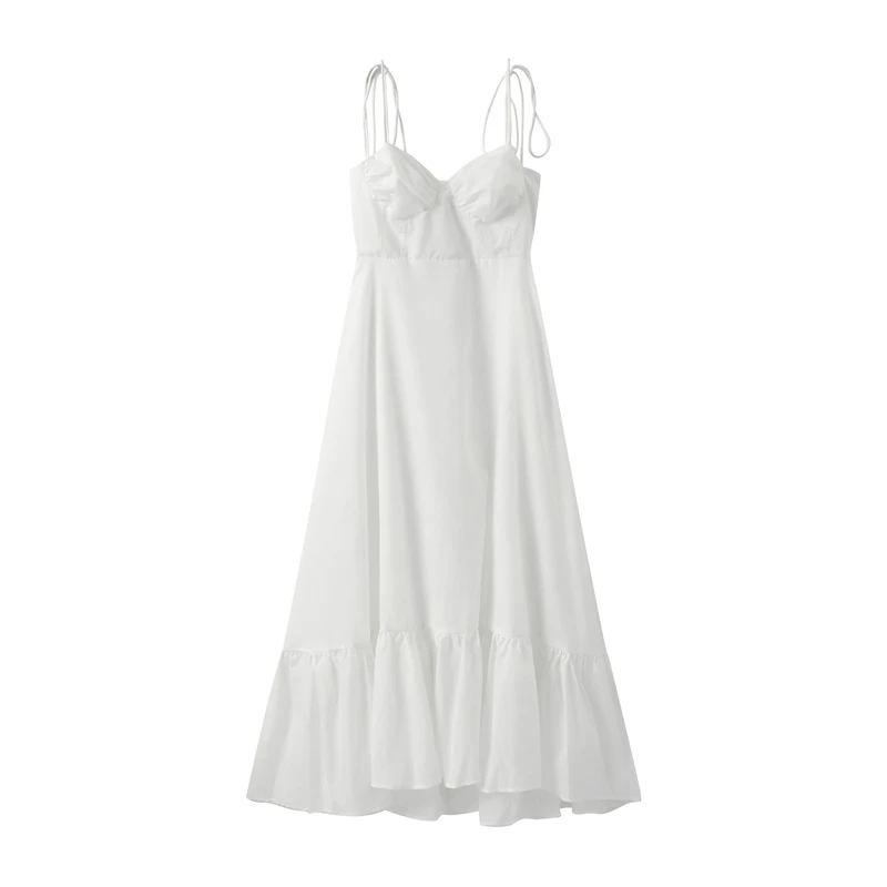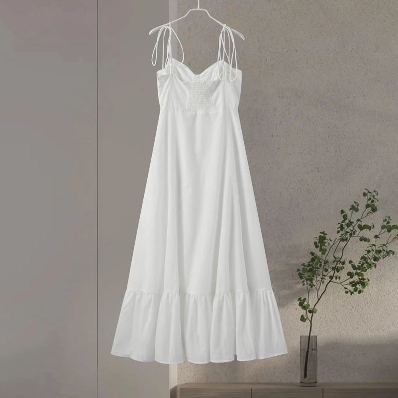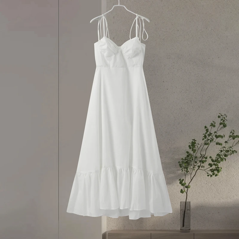 Fleepmart Beach Pleated Ruffle Hem Lace Sling Women Dress Fashion Tube Sleevelss Backless Female Dresses 2024 Spring Summer Sexy Lady Robe