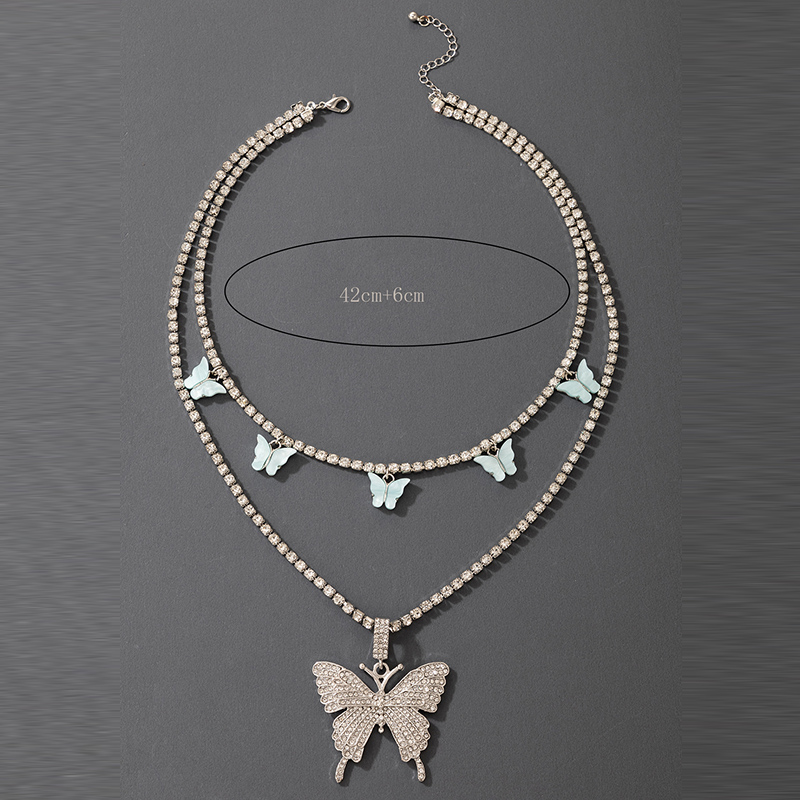 Fleepmart Big Butterfly Pendant Neckalce for Women INS New Acrylic Tassel Multi-layer Chain Choker Alloy Party Jewelry Collar