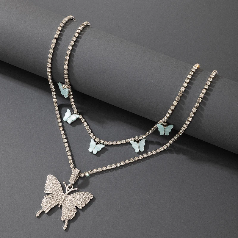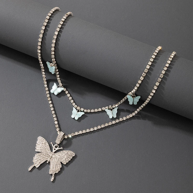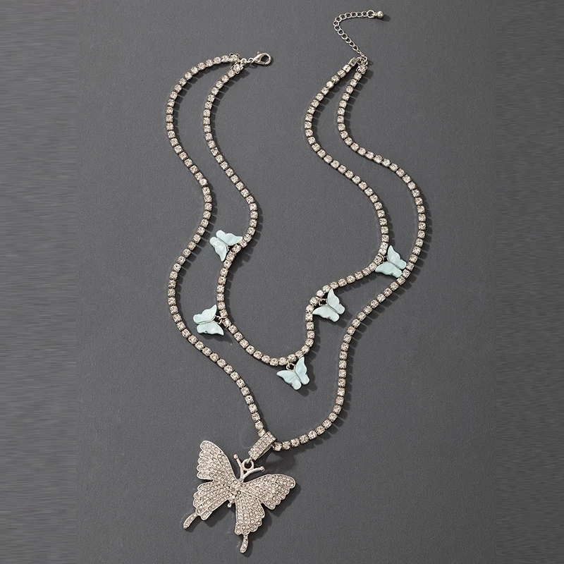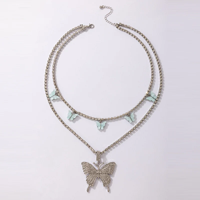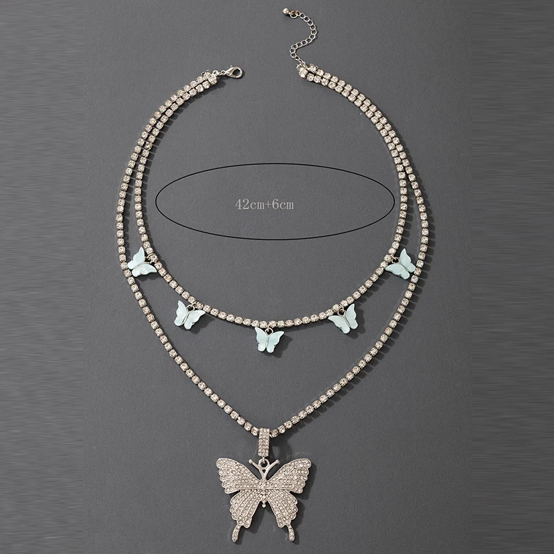 Fleepmart Big Butterfly Pendant Neckalce for Women INS New Acrylic Tassel Multi-layer Chain Choker Alloy Party Jewelry Collar