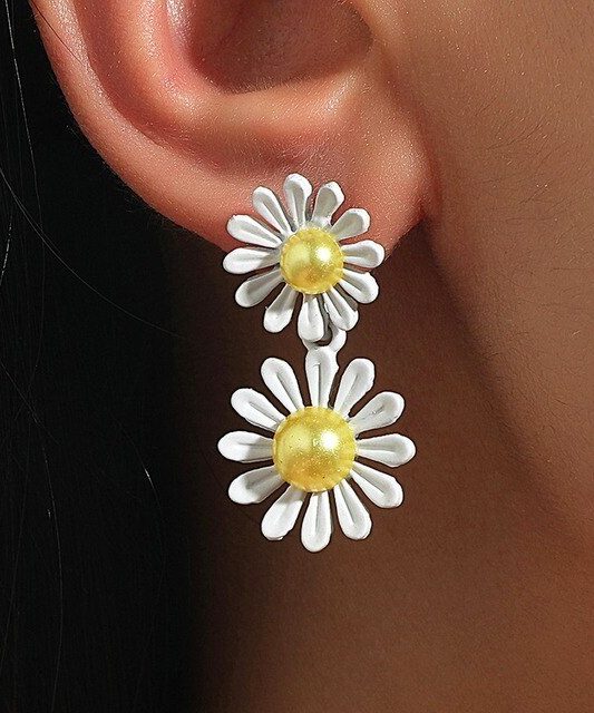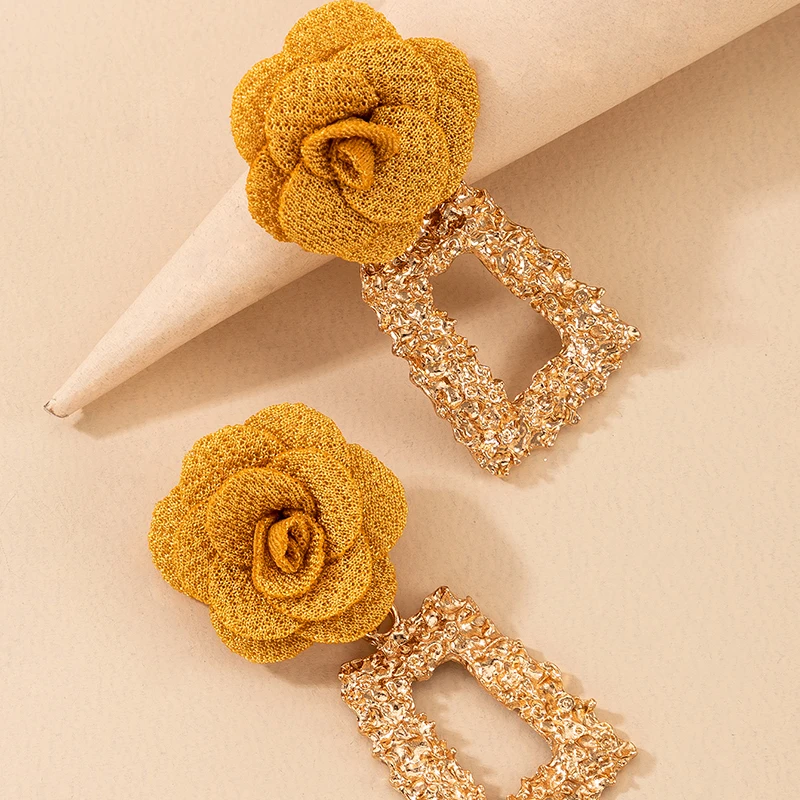 Fleepmart Big Pretty Flowers Drop Earrings for Women Elegant Gold Alloy Metal Geometry Dangle Earrings Party Jewelry Серьги