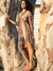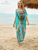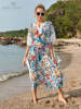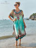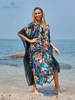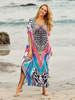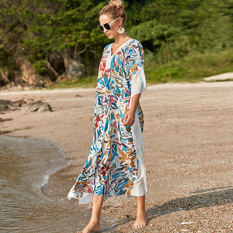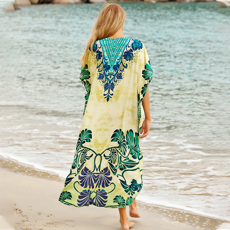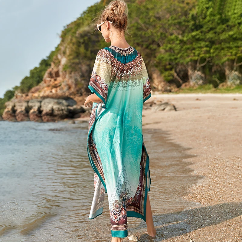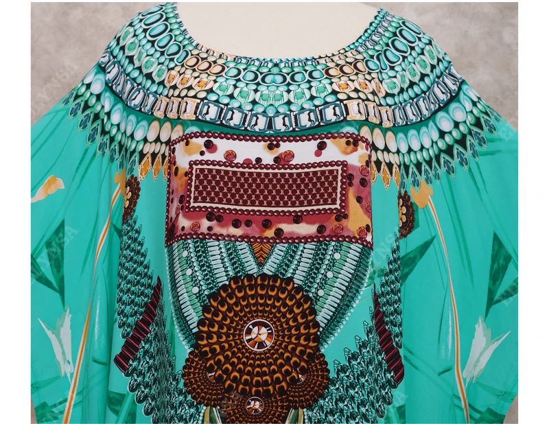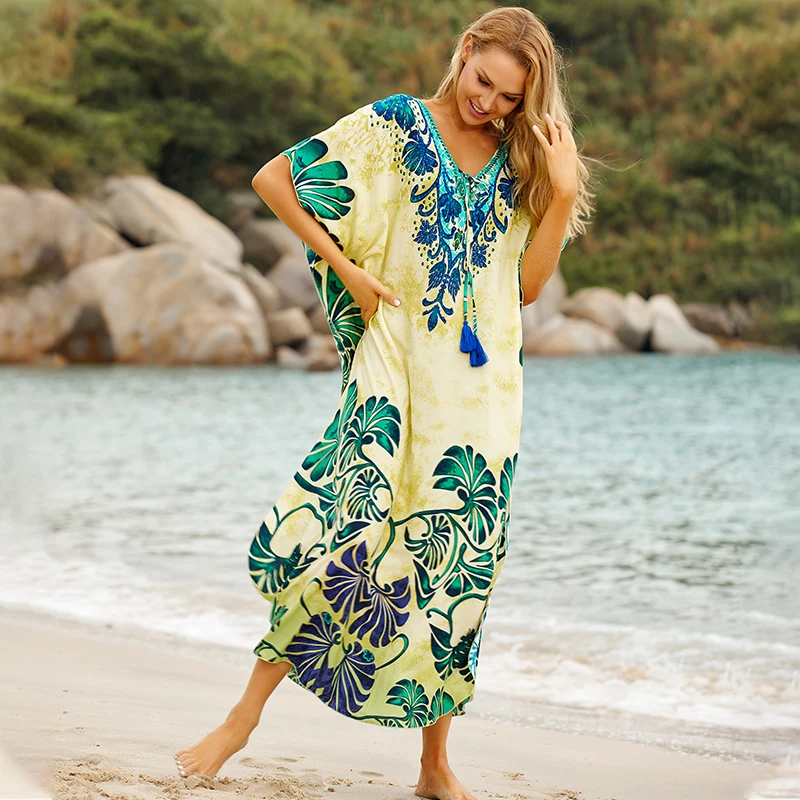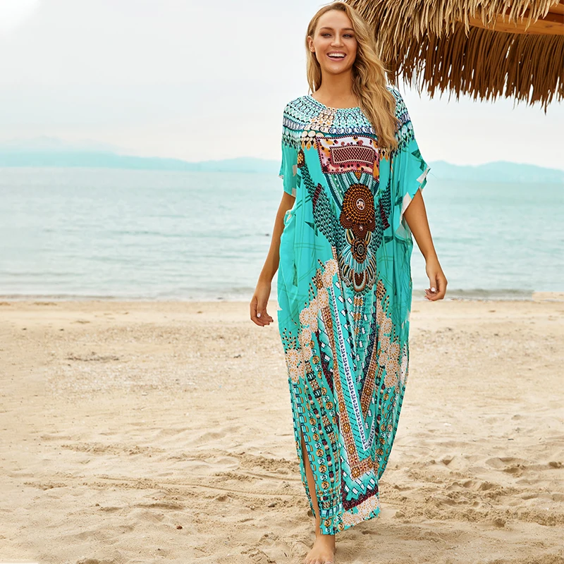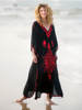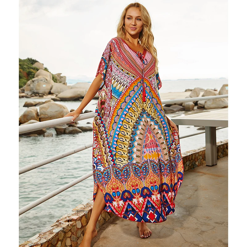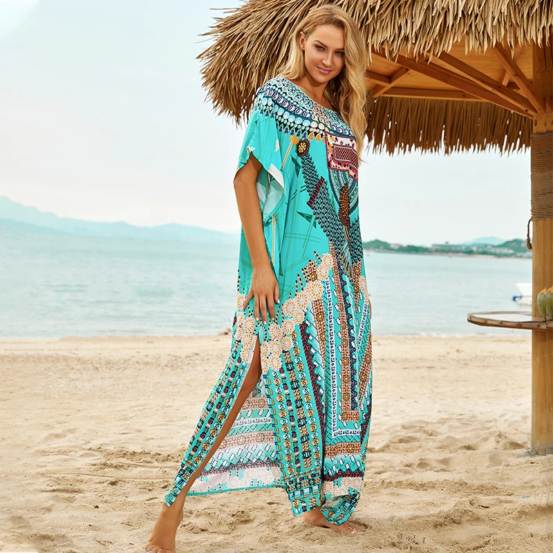 Fleepmart Black Indie Folk Turkey Kaftan Beach Dress Sexy V-Back Plunging Neck Half Sleeve Side Split Plus Size Women Summer Dress