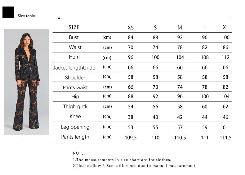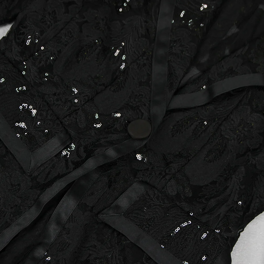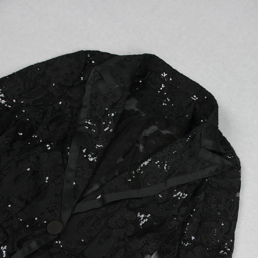 Fleepmart Black Lace Mesh Embroidered Sequin Pant Sets White New Designer Sequins Blazer Pants Set 2 Pieces Pants Suits Punk Suit Outfis