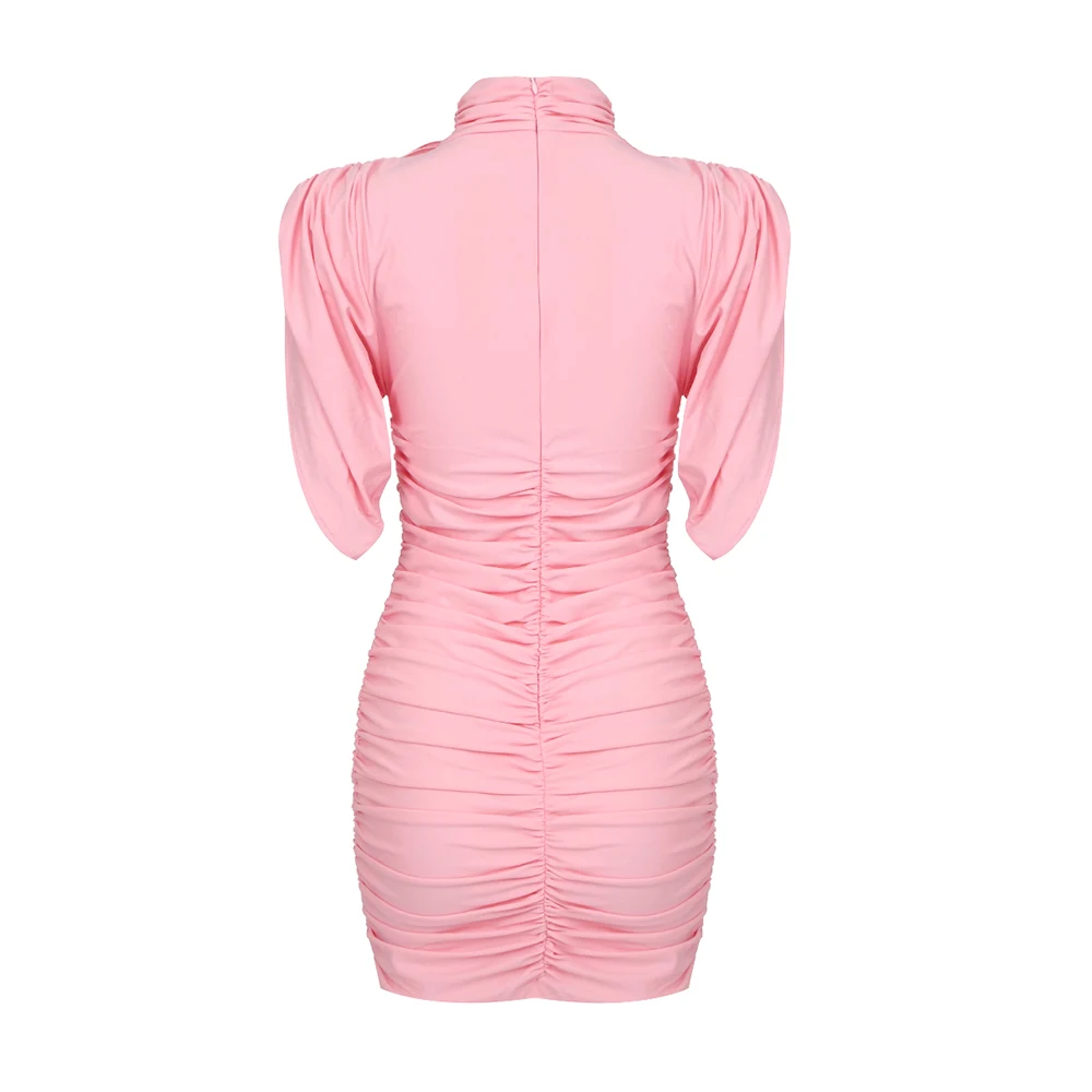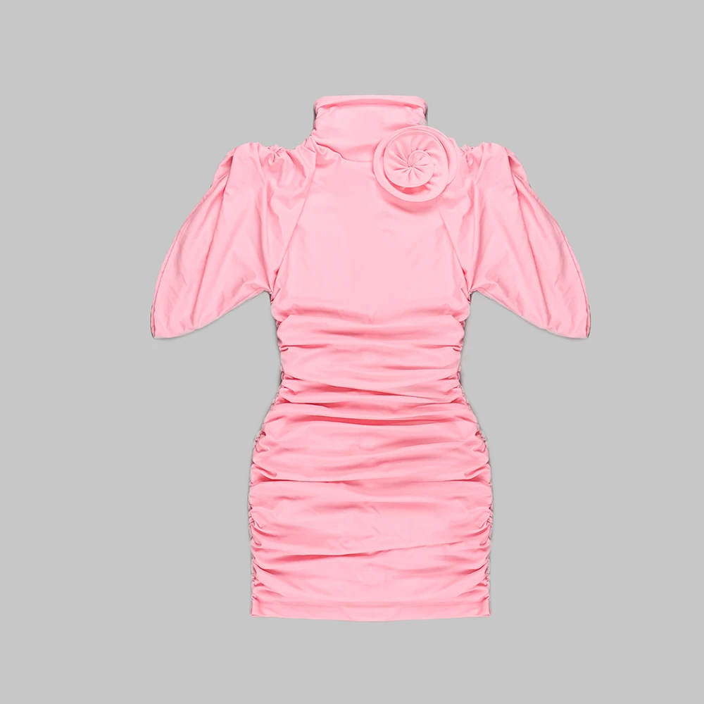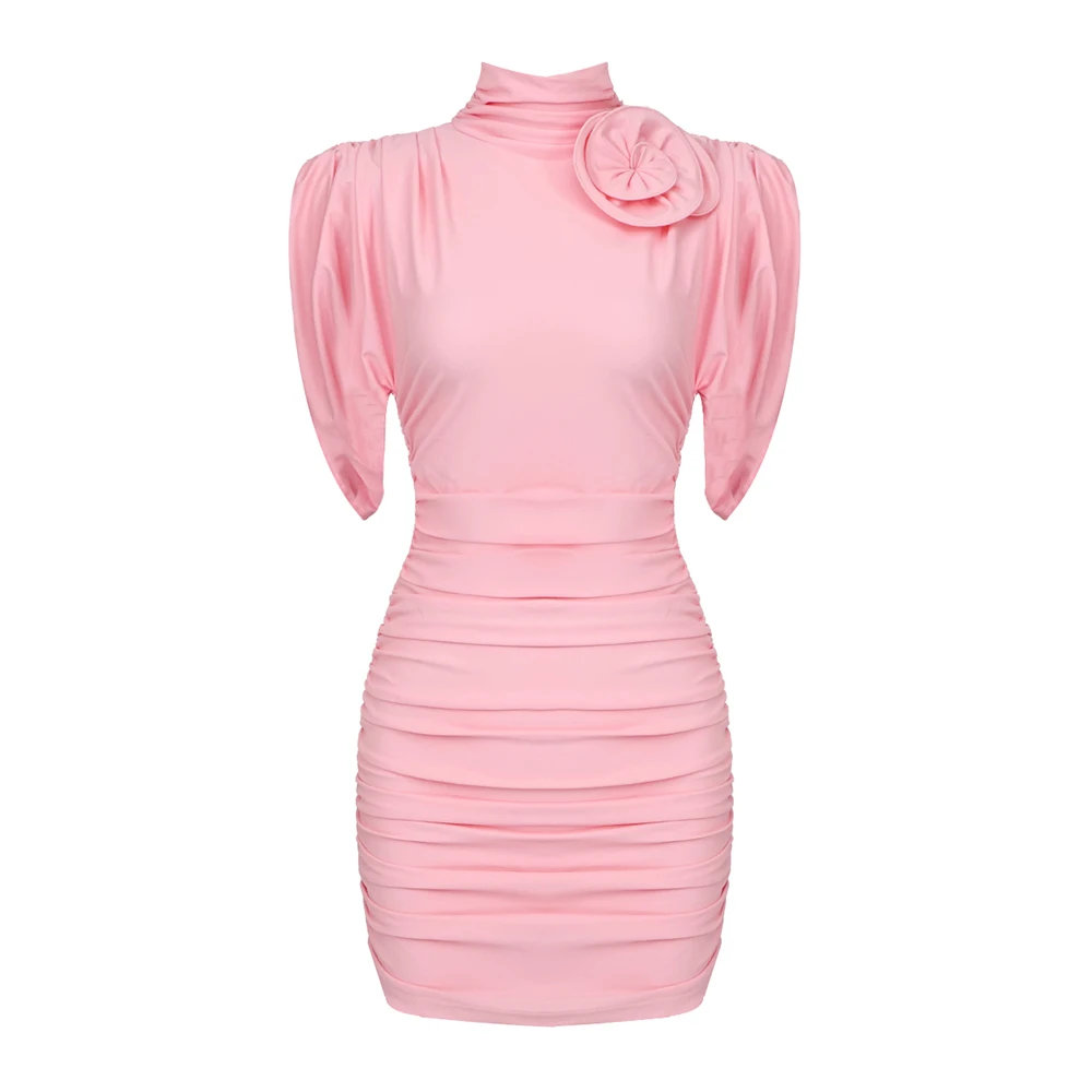 Fleepmart Black Pink Color Women Short Sleeve Fashion Bodycon Mini Dress Flowers Fashion Birthday Party Celebrate Nightclub Dress