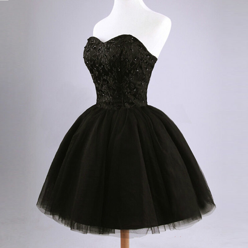 Fleepmart Black Short Prom Dress Elegant Women Lace Up Sweetheart Beaded Princess Mini Cocktail Dress