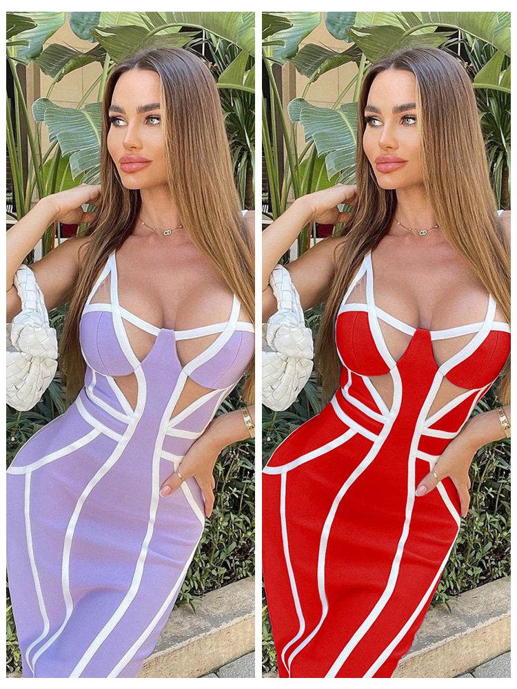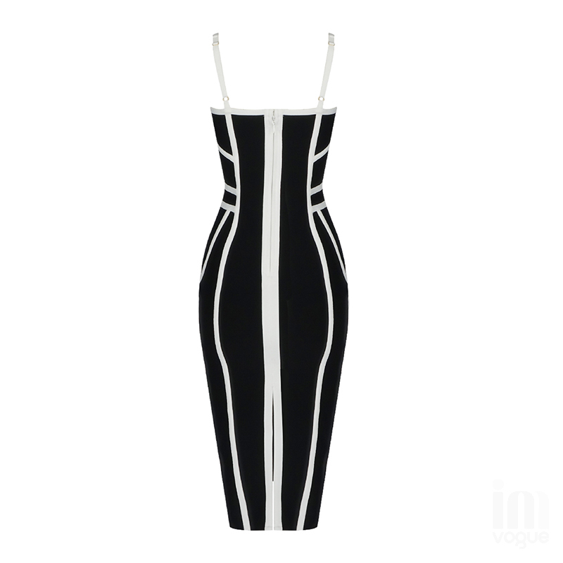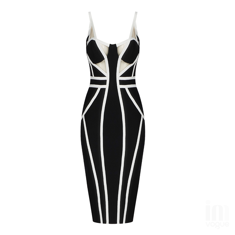 Fleepmart Black White Bandage Dress 2022 New Year Midi Bandage Dress Bodycon Women Summer Mesh Sexy Party Dress Evening Club Outfits