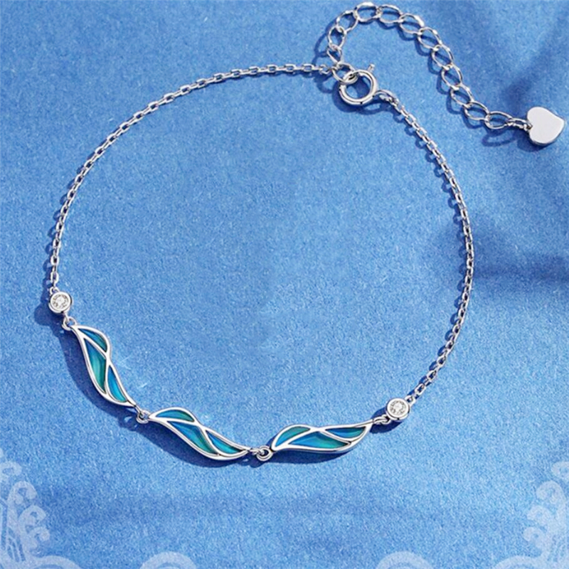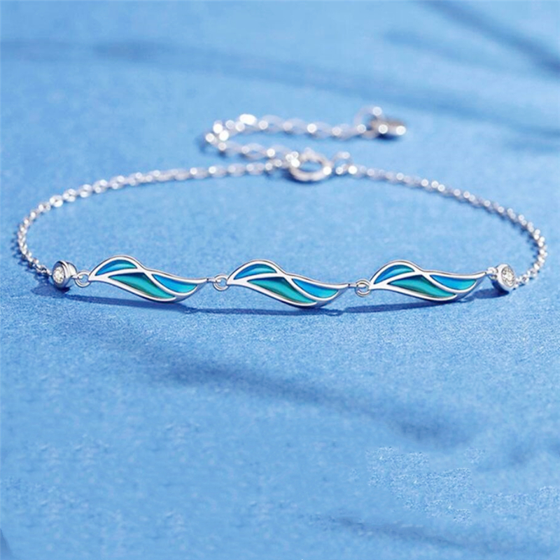 Fleepmart Blue Drip Glaze Waves Spray Fresh Lovely 925 Sterling Silver Female Resizable Bracelets