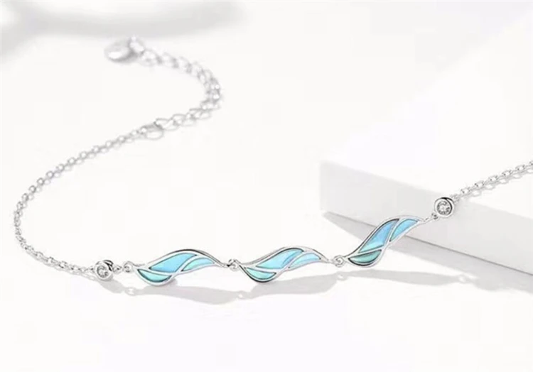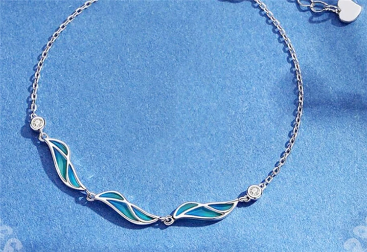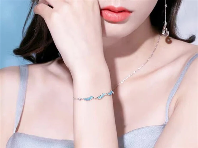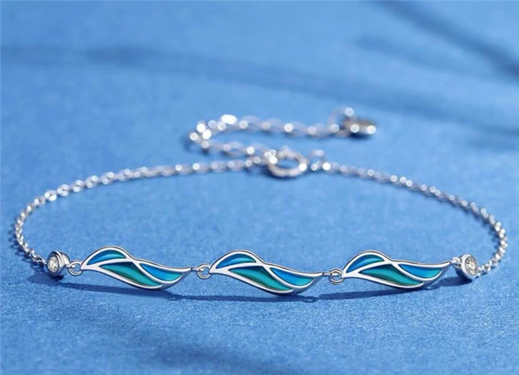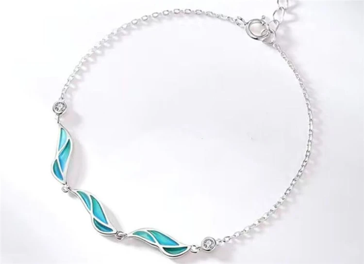 Fleepmart Blue Drip Glaze Waves Spray Fresh Lovely 925 Sterling Silver Female Resizable Bracelets