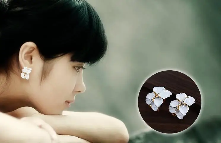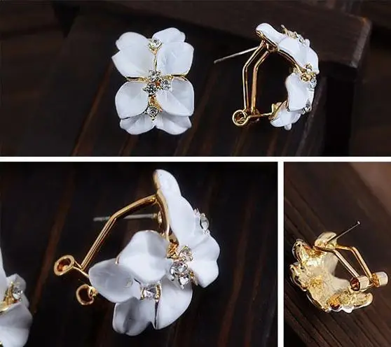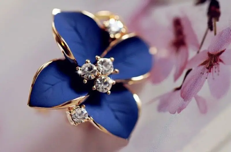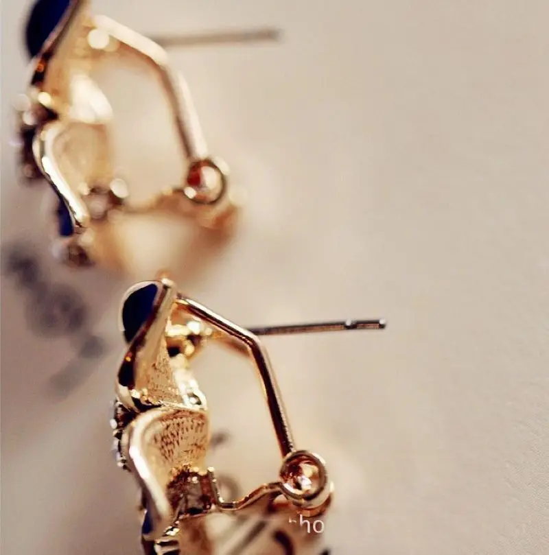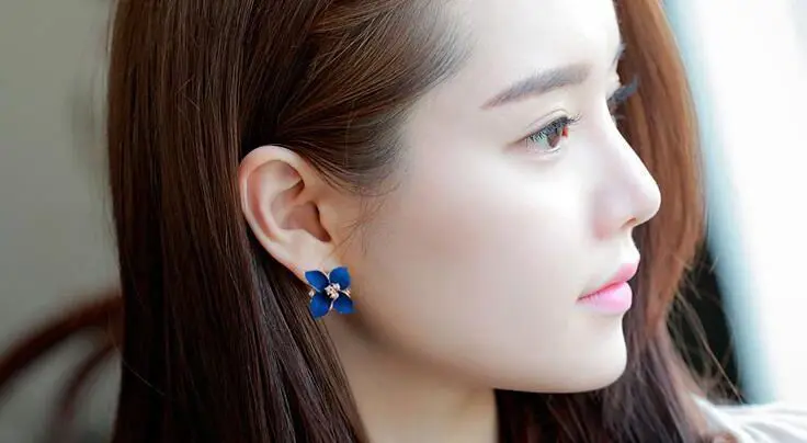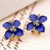 Fleepmart Blue Flower Stud Earrings Ladies Elegant Gold Rhinestone Pierced Earrings Brinco Women Jewelry Gift Fashion