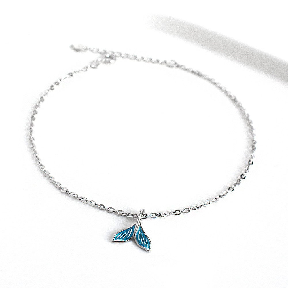 Fleepmart Blue Ocean Mermaid Bracelet for Ankle 925 Sterling Silver Fish Tail Foot Anklets Bracelets Jewery for Leg