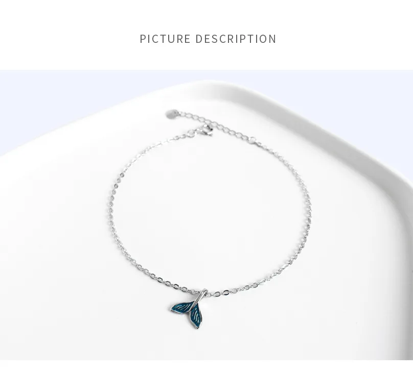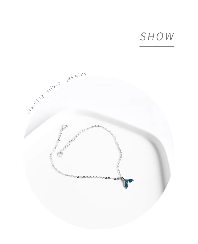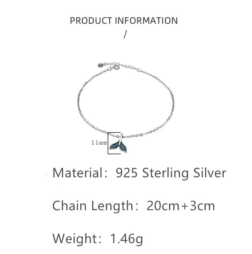 Fleepmart Blue Ocean Mermaid Bracelet for Ankle 925 Sterling Silver Fish Tail Foot Anklets Bracelets Jewery for Leg