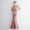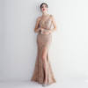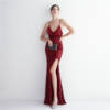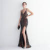 Fleepmart Blue Sequin Backless Sexy Slit Long Party Evening Dresses Luxury V Neck Velvet Stretch Sleeveless Cocktail Prom Dress