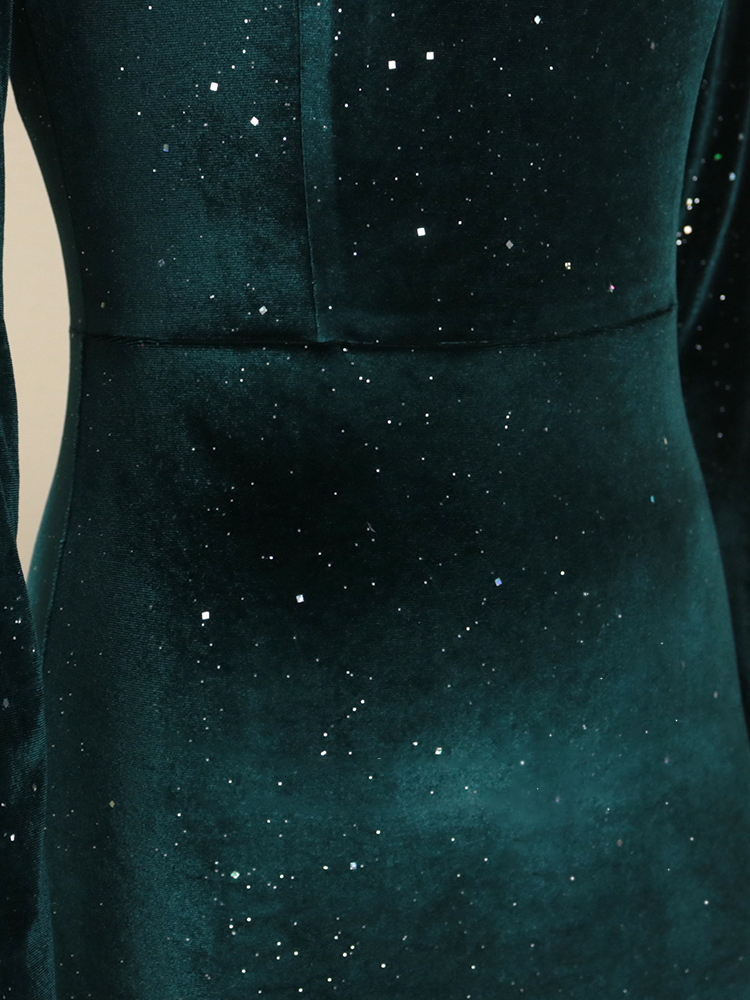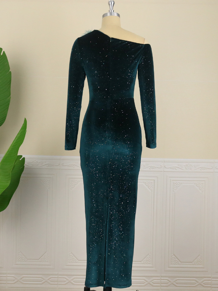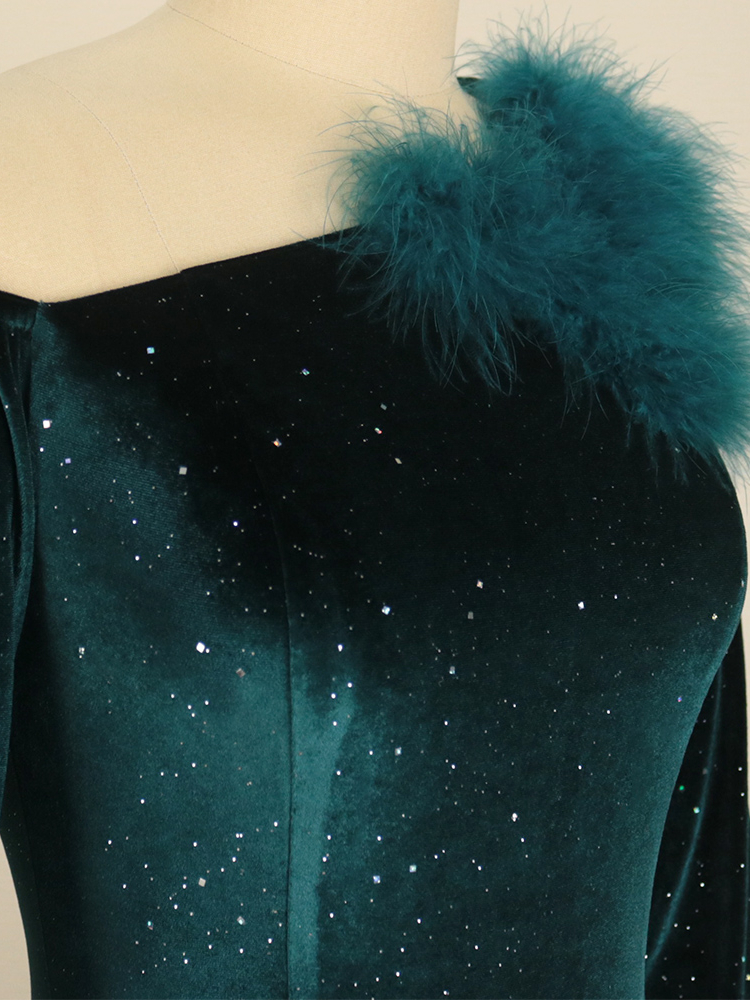 fleepmart Bodycon Dress Women Green Christmas Party Velvet Winter Feather Shiny Sequin Evening Sheath Sexy Night Out Birthday Glitter Gown