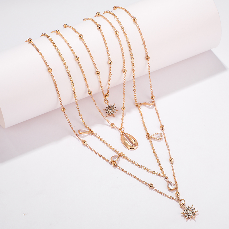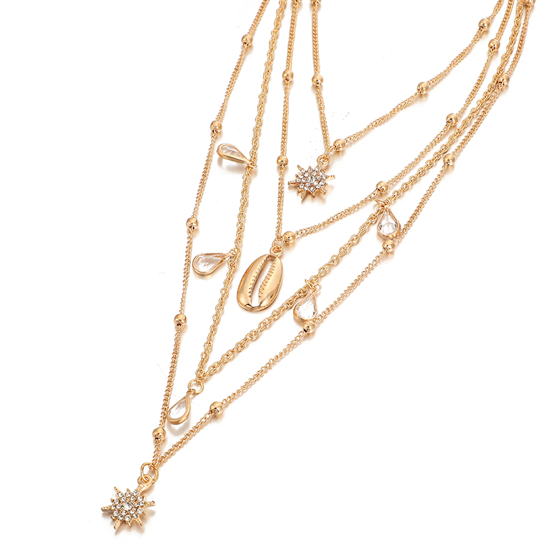 Fleepmart Boemian Layered Necklace Water Drop Crystal Stone Pendant Shiny Sun Summer Shell Chockers Women Jewelry
